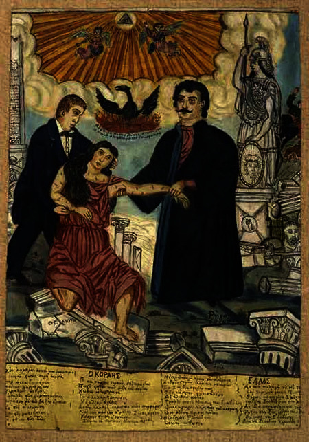 Μολονότι, στην αρχή, ο Κοραής είχε θεωρήσει πρόωρη την Ελληνική Επανάσταση, βαθμιαία ενεργοποιήθηκε πατριωτικά και ανέπτυξε μεγάλη φιλελληνική δράση στο Παρίσι, με μεταφράσεις και εκδόσεις «θουρίων», «σαλπισμάτων», «παραινέσεων» κτλ., με λόγους και με επιστολές σε σημαντικά πρόσωπα της διεθνούς πολιτικής. Τα τελευταία χρόνια της ζωής του σκιάστηκαν από τη σφοδρή πολεμική του (με πολύ επιθετικά ανώνυμα φυλλάδια και σχόλια) κατά της αυταρχικής πολιτικής του Καποδίστρια. […]