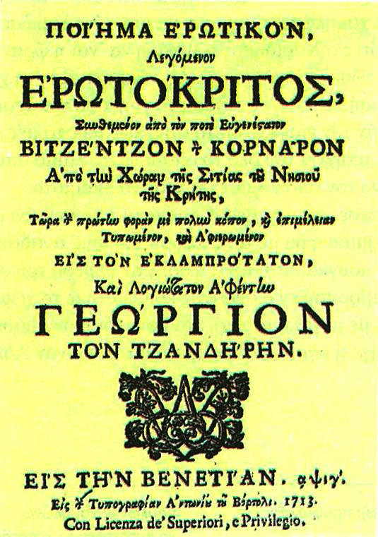 Στυλιανός Αλεξίου, «Εισαγωγή». Βιτσέντσος Κορνάρος, Ερωτόκριτος, επιμ. Στυλιανός Αλεξίου, Ερμής, Αθήνα 1985, μβ΄-μγ΄.
