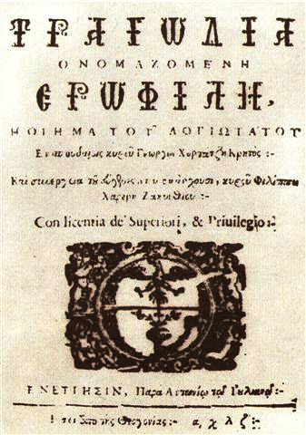 Αυτή η κλασικίζουσα τραγωδία των 3.205 στίχων είναι σαφώς η πιο διάσημη, η πιο συχνά δημοσιευμένη (ως λαϊκή φυλλάδα στη Βενετία) και η πιο πολυπαιγμένη τραγωδία του κρητικού θεάτρου. Έχει επίσης τη μεγαλύτερη απήχηση, από τα έργα του κρητικού θεάτρου, στη λογοτεχνία και τον λαϊκό πολιτισμό. Το έργο γράφτηκε στο Ρέθυμνο γύρω στο 1600 ή λίγο πριν από τον Γεώργιο Χορτάτση. Ο συγγραφέας ήταν πολύ γνωστός στην εποχή του, τώρα όμως δεν γνωρίζουμε πολλά γι’ αυτόν. […]