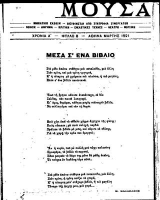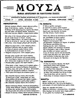 Χ.Λ. Καράογλου, Το περιοδικό Μούσα (1920-1923). Ζητήματα ιστορίας της νεοελληνικής λογοτεχνίας, Εκδόσεις Νεφέλη, Αθήνα 1991, 207.