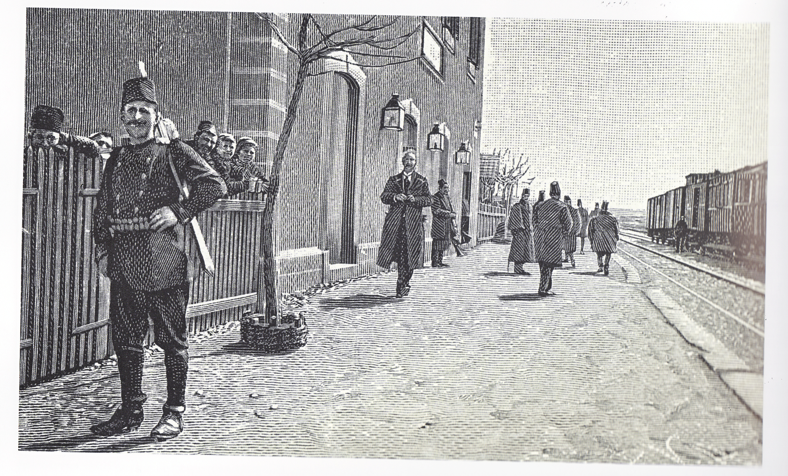 Εμείς, ωστόσο, δεν είμαστε εδώ απλώς για να θαυμάσουμε το μυθικό τραίνο. Εμείς περιμένουμε τον νεαρό Μελενίκιο σπουδαστή Στέφανο Φουρτούνα. Και, επιτέλους!, Νάτος που κατεβαίνει. Καθώς πατά στο τελευταίο σκαλοπάτι του βαγονιού, στέκεται για κλάσματα του δευτερολέπτου και ρίχνει μια ματιά τριγύρω, σαν να βλέπει κάτι καινούργιο και κάτι παλιό μαζί. Έτσι τουλάχιστον μας φαίνεται. Μέχρι να αποφασίσουμε, εκείνος έχει ήδη κατεβεί. Τώρα τον βλέπουμε να κατευθύνεται μαζί με τους άλλους επιβάτες προς την έξοδο. Ψηλός, λεπτός, ευθυτενής, κομψός, με τη βαλίτσα του στο ένα χέρι και στο άλλο ένα υφαντό σακούλι, γεμάτο καλούδια από το Μελένικο. Καθώς βαδίζει, μπερδεύεται μέσα σʾ ένα απίστευτο, για τα δικά μας μάτια, πλήθος. Ένα πολύβοο, χρωματιστό και ανόμοιο πλήθος.