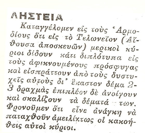 «Θα βάλεις το όνομά μου μέσα σ’ αυτούς τους πρόσφυγες, μη μου πεις διπλοεγγραφές και τέτοια κουραφέξαλα. Θα γραφτώ πρόσφυγας και θα πάρω ένα χωράφι κι ύστερα δε θα με ξαναδείς».