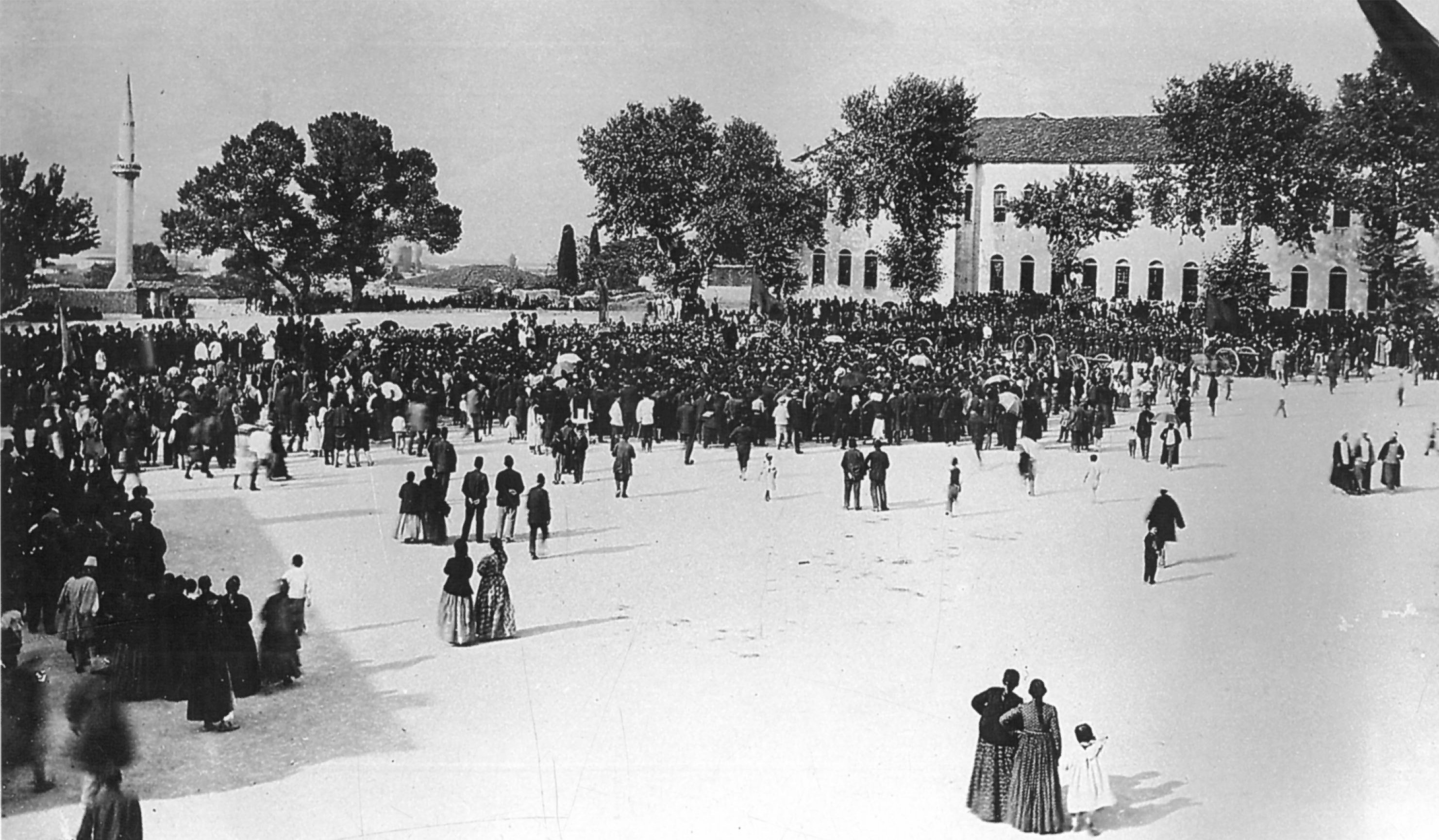 Όταν ζύγωσε το πλήθος, άρχισε να καλημεράει δεξιά και ζερβιά, φέροντας το δεξί του χέρι στα στήθια του, σ’ ένδειξη μεγάλου σεβασμού.