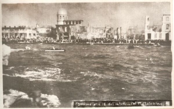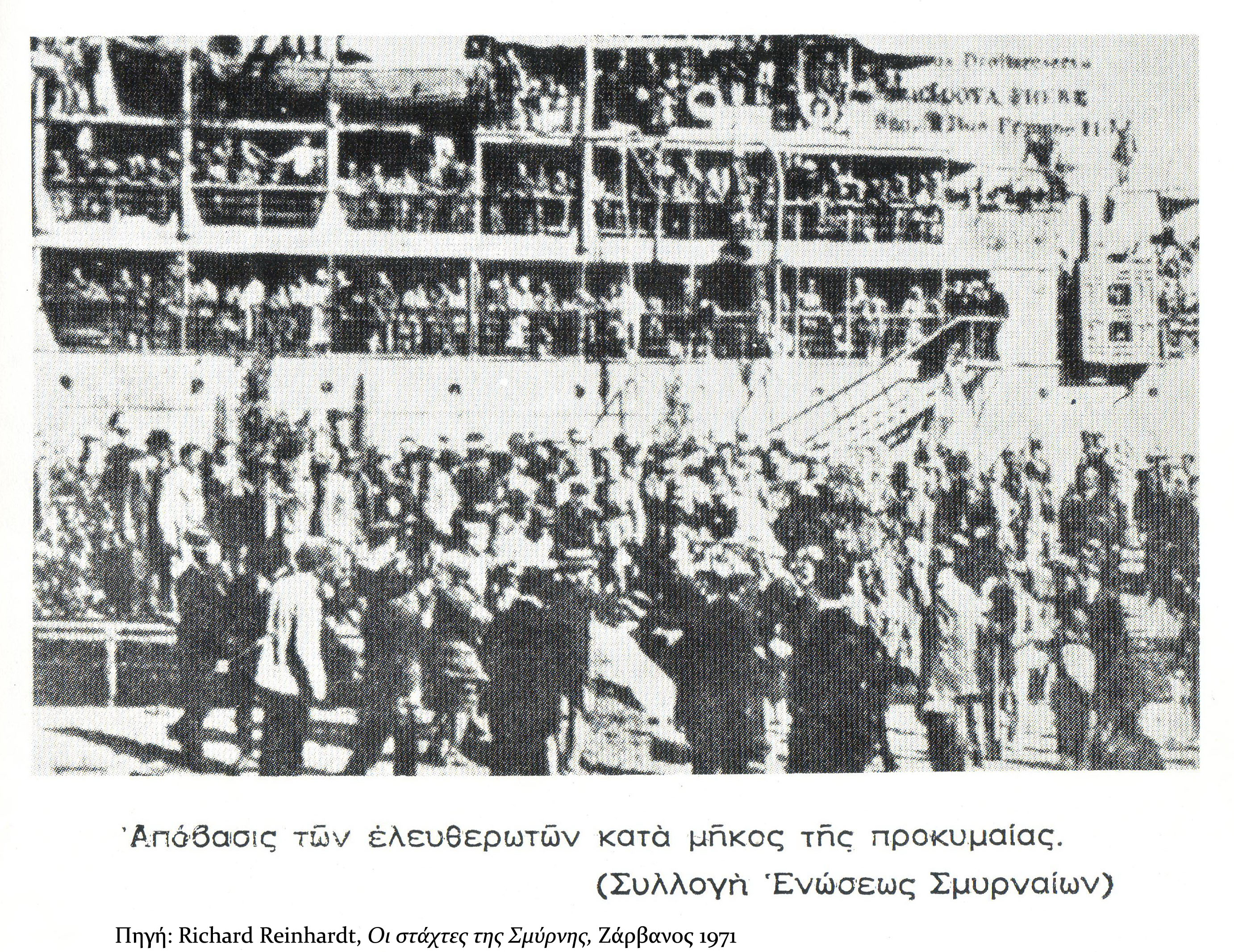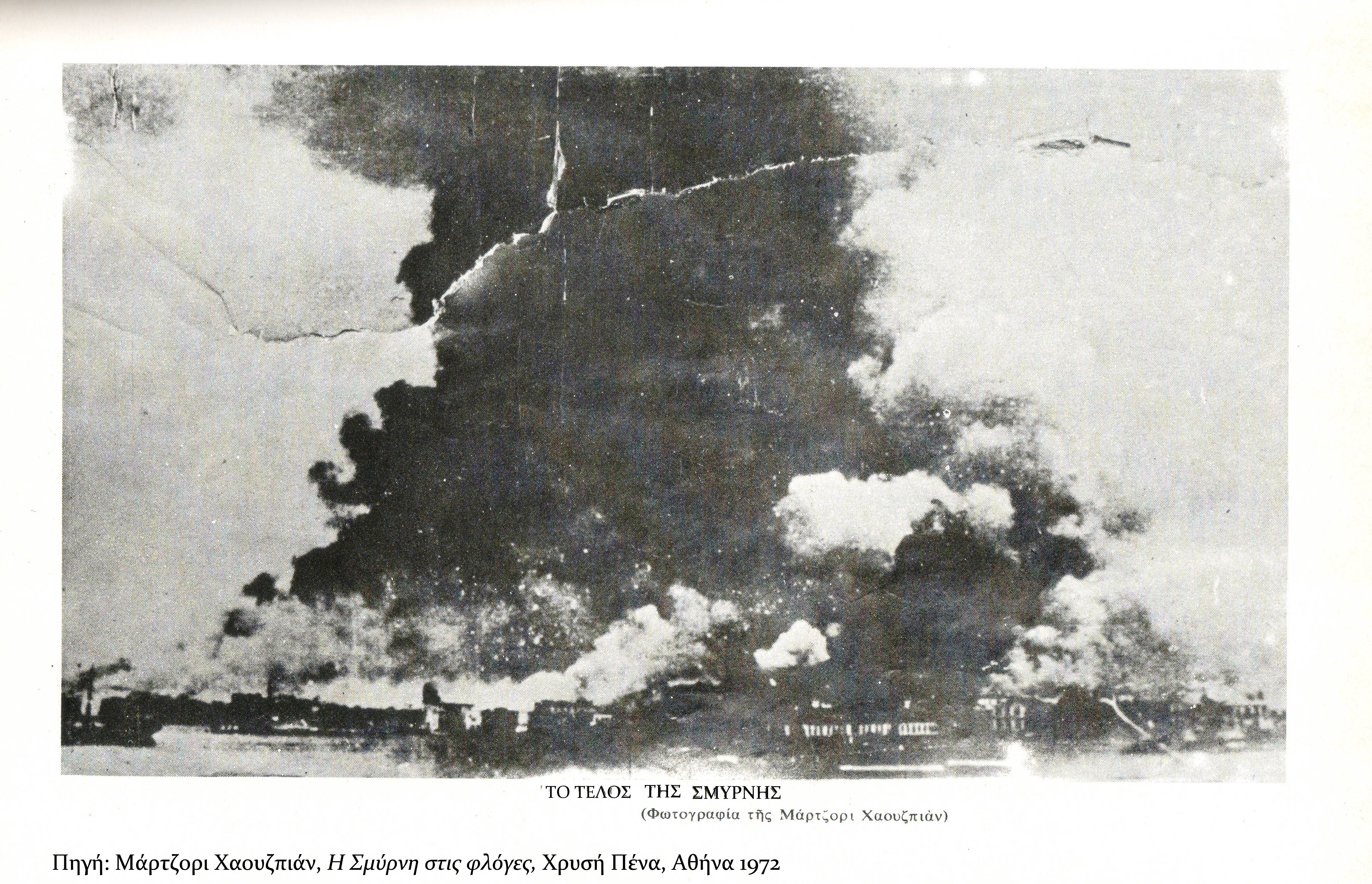 Στο τρενάκι για τη Σμύρνη μάθαμε πως ο στρατιωτικός διοικητής Νουρεντίν είχε παραδώσει το μητροπολίτη Χρυσόστομο στο μανιασμένο όχλο έξω απ’ το διοικητήριο. Του ξερίζωσαν τα γένια, του βγάλανε τα μάτια, του κόψανε τη μύτη και τ’ αυτιά. Το πτώμα του το πήρανε δυο αιχμάλωτοι έλληνες στρατιώτες και το θάψανε στο γήπεδο του «Απόλλωνα». Στο σταθμό της Πούντας αντικρύσαμε ένα χείμαρρο από τούρκικο στρατό να πλημμυρίζει την προκυμαία. Πάνω σε άλογα, πεζοί, άλλοι με καινούριες στολές, άλλοι κουρελιασμένοι με ελληνικά χιτώνια, αγριόμορφοι τσέτες με σαρίκια και βράκες, περνούσαν μέσα σε σύννεφα σκόνης –γένια του διαβόλου για τα παιδικά μάτια μου. Τους ακολουθούσε ατέλειωτη σειρά από λογής τροχοφόρα φορτωμένα με πολεμοφόδια. Μας προσπερνούσαν ναντσιονάτοι με περιβραχιόνια· ομάδες σε αμάξια και πεζή, με τη σημαία της εθνικότητάς τους· περιπολίες από ξένα αγήματα, για να προστατεύουν τους υπηκόους τους. Μόνον εμείς είχαμε αφεθεί απ’ τους χριστιανούς στο έλεος των τούρκων. Περπατούσαμε δεμένοι με μιαν «αόρατη αλυσίδα» απ’ τη μαμά –εκείνη να κρατά την τσάντα με τα χρυσαφικά τυλιγμένη σ’ ένα μαύρο σάλι, εγώ το εικόνισμα της αγίας Αναστασίας κάτω απ’ τη μασχάλη μου. Το σπίτι του νονού της Τασώς ήταν ένα τρίπατο στην προκυμαία. Ο Κωστής Σεβαστόπουλος, απ’ τους πρόκριτους της Σμύρνης, είχε φύγει μαζί με την οικογένειά του την προηγούμενη μέρα για τη Χίο με ιστιοφόρο, εγκαταλείποντας το σπίτι του στους φιλοξενούμενους του απ’ τα προάστια και το εσωτερικό. Η υπηρέτριά του, μια καλοσυνάτη μεσόκοπη γαλλίδα, που δε θέλησε να τους ακολουθήσει, βόλευε όπως-όπως τον κόσμο. Στη «βαφτισιμιά» του αφεντικού τής παραχώρησε μια κάμαρα στο τρίτο πάτωμα πλάι στη δική της. Μας έφερε στρωσίδια. Ήταν το πρώτο μας καταφύγιο. Αγκαλιαστήκαμε μ’ ένα αίσθημα αισιοδοξίας, πως βρισκόμασταν στο κέντρο της Σμύρνης, μαζί με όλους και η τύχη μας θα ήταν κοινή. Απ’ το μπαλκόνι παρακολουθούσαμε τη μυρμηγκιά σε όλο το μήκος της προκυμαίας απ’ τους άστεγους, να ’ναι καθισμένοι στο λιθόστρωτο, ανάμεσα σε μπόγους, μπαούλα, στρώματα, με τα μάτια στυλωμένα προς τη θάλασσα μήπως ξεπροβάλλει κανένα πλοίο. Απέναντί μας, στα ξένα πολεμικά, οι ναύτες κάνανε αδιάφοροι την καθημερινή τους υπηρεσία. Γύρω τους κρώζανε ευτυχισμένοι γλάροι. Η ελευθερία απείχε λίγα μόλις μέτρα από μας –μας χώριζε απ’ τη θάλασσα μια νοητή αλυσίδα σα να ’μασταν λεπροί. Όσοι μπαινόβγαιναν, διηγούνται ανατριχιαστικές σκηνές στους ρωμιομαχαλάδες: Τη νύχτα οι τούρκοι στρατιώτες μαζί με πολίτες μπαίνανε στα σπίτια, βίαζαν γυναίκες, σκότωναν όσους τους αντιστέκονταν, κρεμούσαν απ’ τους φανοστάτες παπάδες. Κάποιος, που πήγε στο σπίτι του θείου του, βρήκε την οικογένειά του στην τραπεζαρία, τέσσερα άτομα, σκοτωμένα πάνω στις καρέκλες και στο τραπέζι τα σερβιρισμένα φαγιά να τα τρώνε οι γάτες… Ένα βράδυ κυκλοφόρησε η τρομερή είδηση: Ο Νουρεντίν είχε βγάλει ανακοίνωση, πως όσοι έλληνες και αρμένιοι ήταν από δεκαοκτώ ως σαρανταπέντε χρονών, θα παραμένανε αιχμάλωτοι. Οι γέροι και τα γυναικόπαιδα είχαν διορία ως τις 17 Σεπτεμβρίου να φύγουν απ’ τη θάλασσα, αλλιώς θα τους οδηγούσαν στο εσωτερικό. Θρήνος και οδυρμός μέσα στο σπίτι απ’ τις οικογένειες, που είχαν άντρες για αιχμαλωσία. Μερικοί σκέπτονταν να ντυθούν γυναικεία. Ένα βράδυ απ’ την ταράτσα ακούστηκαν φωνές: «Φωτιά!… Φωτιά!…». Ανεβήκαμε όλοι πανικόβλητοι. Ο