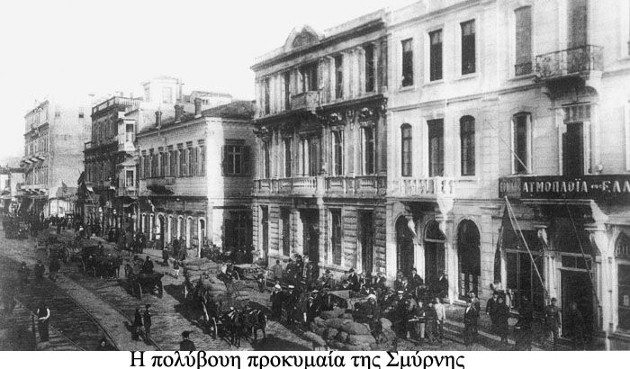 Η Σμύρνη παρουσιάζει εικόνα πανικόβλητης πόλης. Οι δρόμοι κατάμεστοι απ’ τα πλήθη, που φθάνουν αλαφιασμένα απ’ το εσωτερικό. Στρατός ασύντακτος με έκφραση φυγάδων. Έξω απ’ τα καφενεία, τα μαγαζιά, στα μπαλκόνια, τα παράθυρα και τις πόρτες – οι σμυρναίοι νύχτα-μέρα συζητούν… Είναι σε απόγνωση –τι να κάνουν; Μοναχά οι περιπολίες της χωροφυλακής, καθώς περνούν ήρεμες, δίνουν ακόμη την ψευδαίσθηση της «ελληνικής κατοχής»… Λέγεται πως οι τούρκοι δεν μπορούν να φθάσουν στη Σμύρνη πριν από δέκα μέρες. Έχει ενισχυθεί η γραμμή Πανόρμου-Φιλαδέλφειας, για να ανακόψει την προέλασή τους, ώστε να μπορέσει να εγκαταλείψει με τάξη τη Μικρά Ασία ο ελληνικός στρατός…