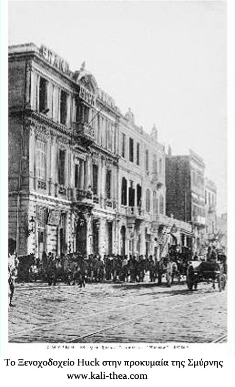 Οι φίλοι απ’ την επάνω συνοικία δίνομε τα ραντεβού μας στη Σμύρνη, στο «Ξενοδοχείον της Αλεξάνδρειας», όπου συνηθίζαμε να μένουμε τις χαρούμενες μέρες, και στα κέντρα της προκυμαίας «Κραίμερ» και «Χατζηφώτη»…