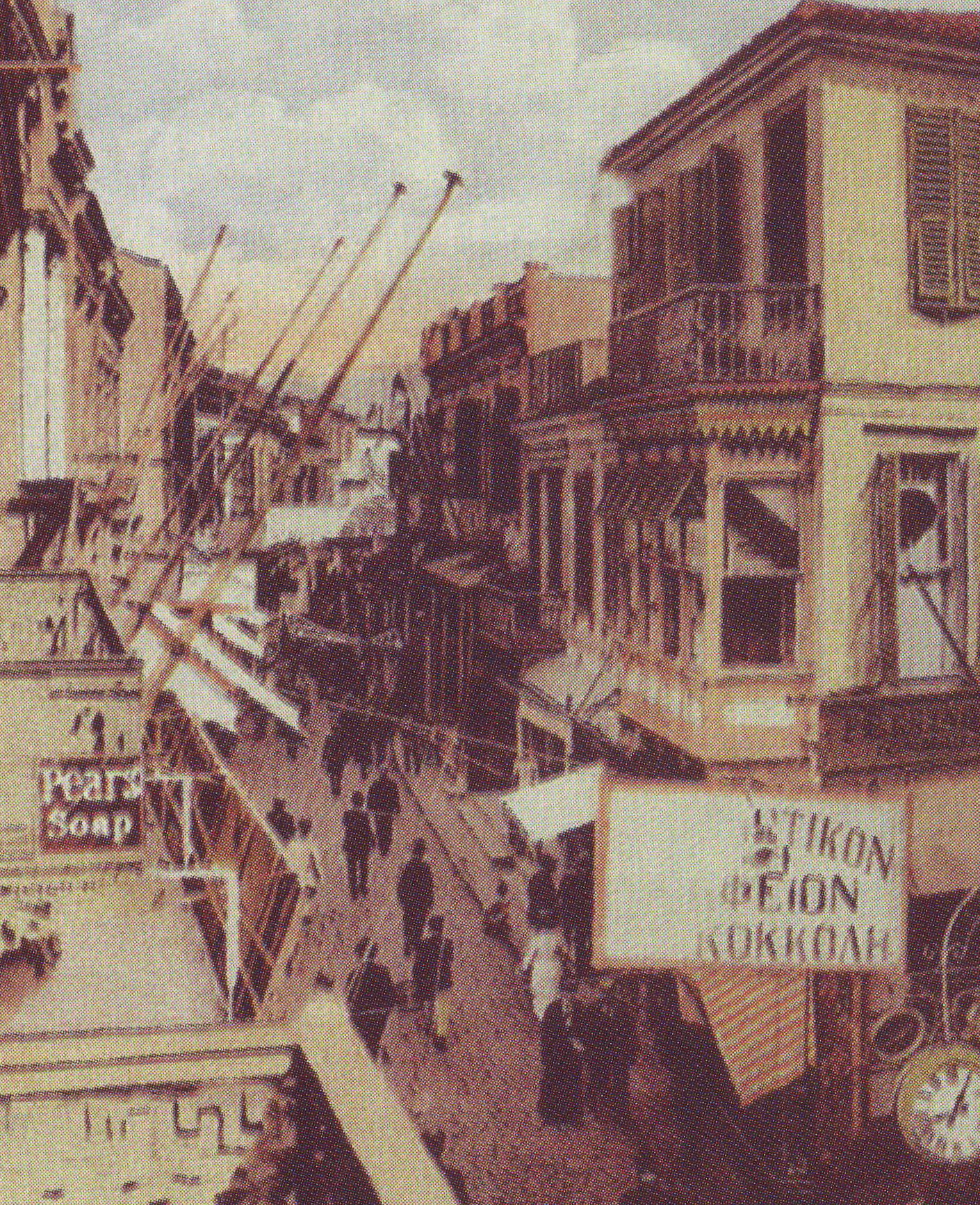 Μα εδώ, από το Φραγκομαχαλά, περνούσε αναγκαστικά όλος ο κόσμος, όχι μονάχα οι φαντασμένοι κ’ οι φιγουράτοι. Ήταν η κεντρική αρτηρία ανάμεσα στους μαχαλάδες και τα ταρσιά. Δευτερότριτοι σιναφλήδες, μαγαζάτορες, εργατιά, μικροϋπάλληλοι, ένας κόσμος ανάκατος, λιγάκι αργοκίνητος μα πάντα κεφάτος κι ανοιχτόκαρδος, με το γκεβεζελίκι του στα χείλια. Τούρκος, σχεδόν κανένας, όπως και σε ολάκερη την κάτω πολιτεία. Ένα αδιάκοπο πάνε κι έλα στο Φραγκομαχαλά. Κι αν τύχαινε να περάσει καμιά καρότσα, βροντολογώντας πάνω στο ντουσεμέ —βάρδα μπρος! βάρδα μπρος!— ο δρόμος ήτανε τόσο στενός, που ο κόσμος κόλλαγε στα ντουβάρια, δεξιά ζερβά, για να γλιτώσει. Κι αν τύχαινε να διασταυρωθούνε δυο καρότσες, έπρεπε να χωθείς μέσα σε κάποιο μαγαζί. Τώρα τελευταία είχανε κάνει την εμφάνισή τους και δυο τρεις καρότσες με λάστιχα τριγύρω στα καρούλια. Φαινότανε αφύσικο, κάτι σα μαγικό, να περνάνε αθόρυβα και ν’ ακούγονται τα πέταλα μονάχα, τάκα τάκα, πάνω στις μαλτεζόπλακες.