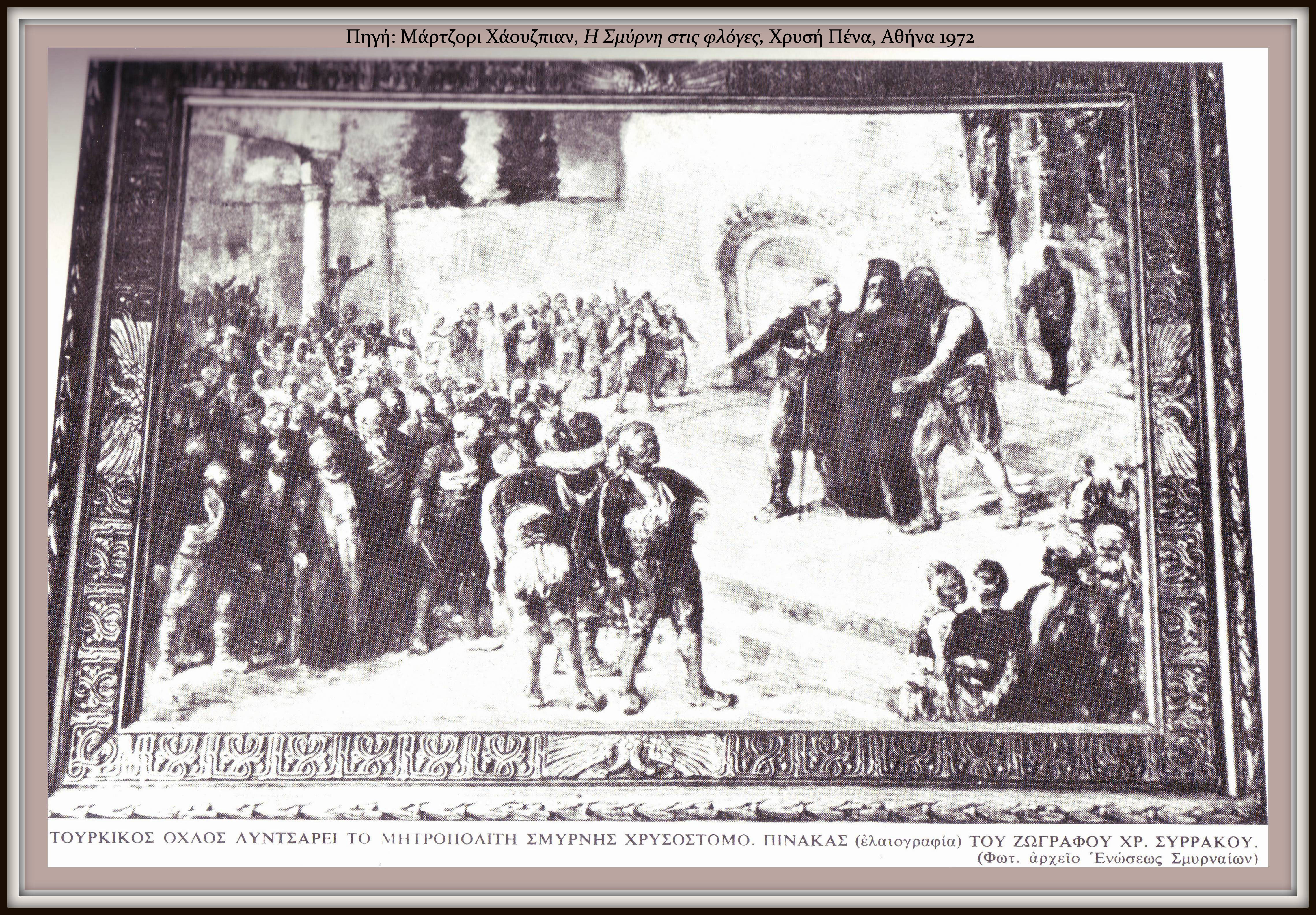 Είναι η μόνη αυθεντική αφήγησις των τελευταίων ωρών της ζωής του μητροπολίτου Χρυσοστόμου. Όλαι αι άλλαι αφηγήσεις Ελλήνων και ξένων δημοσιογράφων περί της ημέρας του θανάτου, εάν τουτέστι το εσπέρας του Σαββάτου ή την πρωίαν της Κυριακής, και περί του είδους των σκληρών βασάνων, τας οποίας υπέστη ο μάρτυς ιεράρχης, δεν έχουν μέχρι τούδε καμμίαν αυθεντικήν βεβαίωσιν παρ’ όλας τας γενομένας ερεύνας. Οι μόνοι αυτόπται μάρτυρες ειναι οι εξηγριωμένοι φονείς, το φανατικόν και αιμοβόρον πλήθος, το οποίον διεμέλισε τον μάρτυρα, αλλ’ εξ αυτών ουδείς δύναται να κληθεί και μαρτυρήσει δια την σκηνήν αυτήν του τραγικού θανάτου. Το πιθανώτερον είναι ότι ο Νουρεδδίν πασάς, διψών εκδίκησιν και φοβούμενος ξενικήν επέμβασιν, παρέδωσε το εσπέρας της ιδίας ημέρας του Σαββάτου τον μητροπολίτην εις το ανυπόμονον και αιμοδιψές πλήθος, το οποίον ωρύετο κάτωθεν του διοικητηρίου και είχε την ακάθεκτον δίψαν των εξεγερθέντων αγρίων ενστίκτων δια να ίδει και εντρυφήσει με απλήστους οφθαλμούς εις το ρέον αίμα και την τραγικώς αλλοιουμένην και σβεννυμένην από μαρτυρικόν θάνατον φυσιογνωμίαν του ιεράρχου, κορυφαίου Ρουμ, συμβολίζοντος εις τα όμματα των Τούρκων την γενναιότητα, την δύναμιν, την υπεροχήν του ηττηθέντος και συντριβέντος τώρα εχθρού.