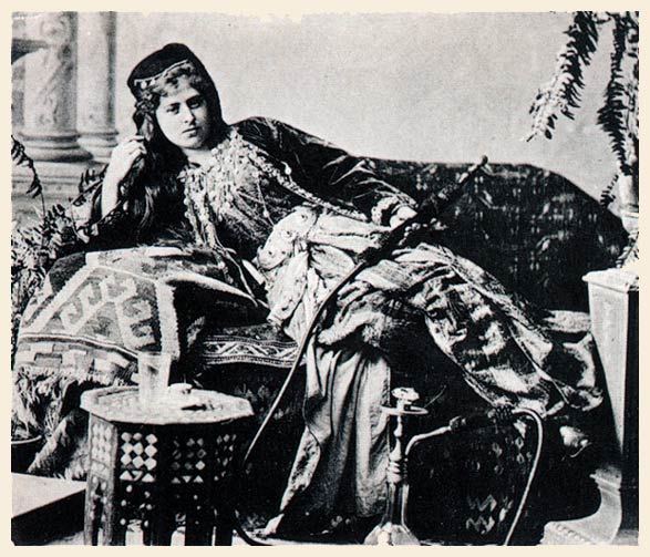 Έτσι, με πολύν κι ανομολόγητο φόβο γλίστρησα στο χαρέμι, χωρίς κανείς να με δει. Η πρώτη εντύπωση μου ήταν πως βρίσκομαι σε χαμάμ. Τα παράθυρα ήταν όλα ψηλά και μικρά, κι είχαν χρωματιστά τζάμια. Μέσα από κει χυνόταν ένα φως θαμπό, λιγοστό, υποβλητικό όπως στις φράγκικες εκκλησίες. Κι ήταν τόσο, όσο χρειαζόταν για να παίρνουν έναν αχνό, αόριστο όγκο τα αντικείμενα και να εξάπτεται η φαντασία ενός περίεργου κοριτσιού.