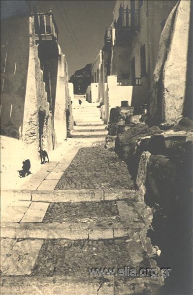 Στον άλλο λόφο —αριστερά σ’ όποιον μπαίνει στο λιμάνι— είναι η παλιά πόλη. Τη στεφανώνει μια πανάρχαια καθολική μητρόπολη, που χρονολογείται, όπως λένε, από τον καιρό του Λουδοβίκου του ΙΒ΄. Τα χρόνια που την επισκέφθηκε ο ταξιδιώτης Τουρνεφώρ, ήταν «η πιο καθολική πολιτεία όλου του Αρχιπελάγους». Είναι και σήμερα, αλλ’ αυτό δε σημαίνει πια μεγάλα πράματα. Ήταν όμως καιρός που ο καθολικισμός γνώρισε μέρες μεγάλης δόξας σε μερικά από τα νησιά των Κυκλάδων: ο καιρός των Σταυροφοριών και της βενετσιάνικης θαλασσοκρατορίας. Οι μεγάλες οικογένειες με τα ξενικά και χτυπητά ονόματα, που είχαν ριζώσει στα νησιά, ήταν όλες καθολικές. Τα νησιά ήταν τα φέουδά τους. Είχαν μεγάλα κτήματα, ήταν πλούσιες, διευθύνανε τα πάντα. Σήμερα, από τα μεγαλεία αυτά, οι απόγονοι των οικογενειών εκείνων δε διατηρούν παρά τη νοσταλγική τους ανάμνηση. Από την εποχή ακόμα που επισκέφθηκε τα νησιά ο κόμης Γκομπινώ, είχαν πέσει σε μαρασμό. Στο θελκτικό του μυθιστόρημα, την Ακριβή Φραγκοπούλου, ο Γκομπινώ μας τους δείχνει να προσπαθούν να διατηρήσουν στη φτώχεια τους μίαν αξιοπρέπεια, που είναι τόσο συγκινητική, όσο και κωμική, να περιφρονούν το λαό —που τους ανταπόδιδε τα ίσα—, να επιζητούν το αξίωμα του άμισθου υποπρόξενου μιας μεγάλης Δύναμης και να περιμένουν τον τυχαίο ερχομό κανενός ξένου πολεμικού για να κάνουν επίσημες επισκέψεις — δανείζοντας ο ένας στον άλλο μια ξεθωριασμένη βελάδα πρωτοκόλλου… Εκτοπισμένοι από μια ορθόδοξη μικροαστική τάξη δραστήρια και έξυπνη, ακτήμονες, οι απόγονοι αυτοί δεν είχαν παρά τους μάταιους τίτλους και τα μεγάλα σπίτια των προγόνων τους, σπίτια παλιωμένα και σχεδόν αδειανά από έπιπλα, που εξακολουθούν να τα κρατούν ανοιχτά από μια τελευταία φροντίδα αξιοπρέπειας, που δεν ξεγελάει όμως πια ούτε τους ίδιους.