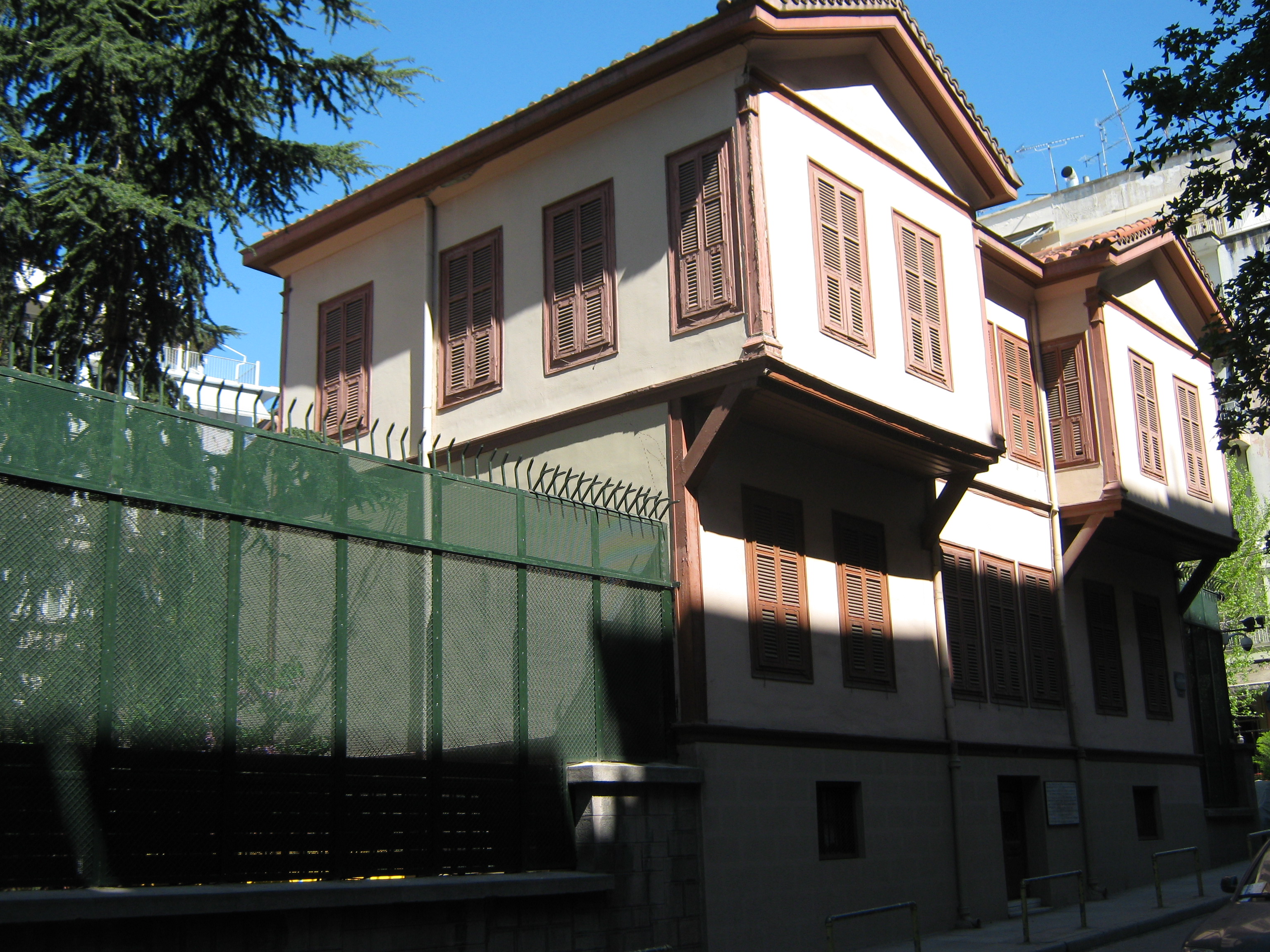 Το σπίτι, ένα πολύ ωραίο διατηρητέο, χτισμένο πριν εκατό χρόνια μα καλοστεκούμενο και καλοδιατηρημένο, τρίπατο, με δύο σαχνισιά να βγαίνουν στο δρόμο και με στριφογυριστή εσωτερική ξύλινη σκάλα, ανήκε σ’ έναν μπέη και το είχε χαρέμι• κάθε πάτωμα και μια χανούμισσα. Το 1924, το έτος της ανταλλαγής των πληθυσμών, το αγόρασε ένας Κωνσταντινουπολίτης από τον Άγιο Στέφανο και το συντήρησε με πολύ μεράκι. Σήμερα μένει σ’ αυτό η μία κόρη του, ψηλά, στο τρίτο πάτωμα, ενώ εγώ βολεύτηκα στο δεύτερο, κι όσο για το πρώτο, είναι αποθήκη. Στο πίσω μέρος, χωρίς να φαίνεται, υπάρχει κήπος με λογιώ λογιώ λουλούδια, τριαντάφυλλα, γαρίφαλα, γεράνια, βιολέτες, βασιλικά κι αηδημητριάτικα, ανάλογα με την εποχή. Ο κήπος διαθέτει και μια επιχωματωμένη δεξαμενή ρωμαϊκών ή βυζαντινών χρόνων — για να μην ξεχνάμε και τ’ αρχαία. Μαζί με τον τεράστιο κήπο του διπλανού διατηρητέου, αποτελεί μια ενότητα με πολλά οπωροφόρα δέντρα (ροδιές, συκιές, κληματαριές, κυδωνιές, αχλαδιά, ερεικιά, ελιά, έναν υπέροχο λωτό και άλλα — ακόμα και κυπαρίσσια υπήρχαν λίγο πριν έρθω), χώρια τα εποχιακά λαχανικά που καλλιεργεί ο διπλανός συμπαθής φοιτητής. Καμιά εικοσαριά γάτες περιτρέχουν τον επίγειο αυτό παράδεισο […]. Αλλά και τα πετεινά του ουρανού είναι ουκ ολίγα: σπουργίτια, δεκαοχτούρες, κάργες, το καναρίνι της νοικοκυράς μες στο κλουβί, και πολλά άλλα που κατεβαίνουν το χειμώνα από το Σέιχ-Σου για πιο πολλή ζεστασιά. Όλο αυτό το αλσύλλιο πιάνει 840 μέτρα και θα το είχαν φάει λάχανο οι εργολάβοι αν δεν ήταν κι αυτό διατηρητέο. Στη νότια πλευρά, προς στην οδό Ολυμπιάδος, ο κήπος καταλήγει απότομα σε γκρεμό έξι μέτρων, επειδή το σπίτι είναι χτισμένο σ’ ένα υπερυψωμένο βράχο κι όλα τα πέριξ είναι επιχωματώσεις.