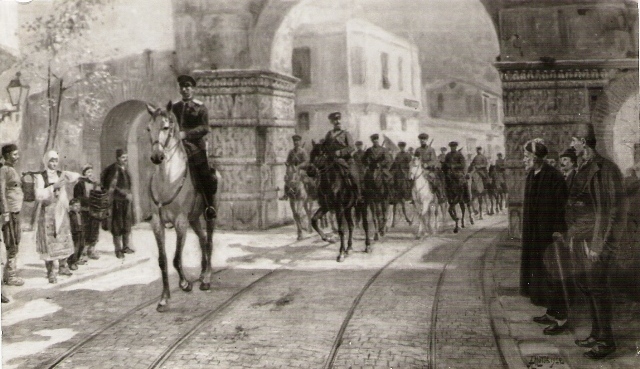 Με την ενσωμάτωση της Θεσσαλονίκης, η οποία την εποχή εκείνη ήταν ήδη μια ευρωπαϊκή πόλη με οργανωμένο και αριθμητικά σημαντικό εργατικό δυναμικό, άλλαξε η ανθρωπογραφία του ελληνικού κράτους, ενισχύθηκε ο πολυπολιτισμικός του χαρακτήρας και προχώρησε σε κάποια μορφή αστικοποίησης. Στην ενότητα αυτή θα παρακολουθήσουμε μέσα από μια σειρά λογοτεχνικών κειμένων, μαρτυριών, φωτογραφικών και άλλων ντοκουμέντων, την υποδοχή των Βαλκανικών Πολέμων στην πόλη της Θεσσαλονίκης, εστιάζοντας τον φωτογραφικό μας φακό σε τρία σημεία: τις εισόδους της πόλης, το λιμάνι της και το κέντρο.