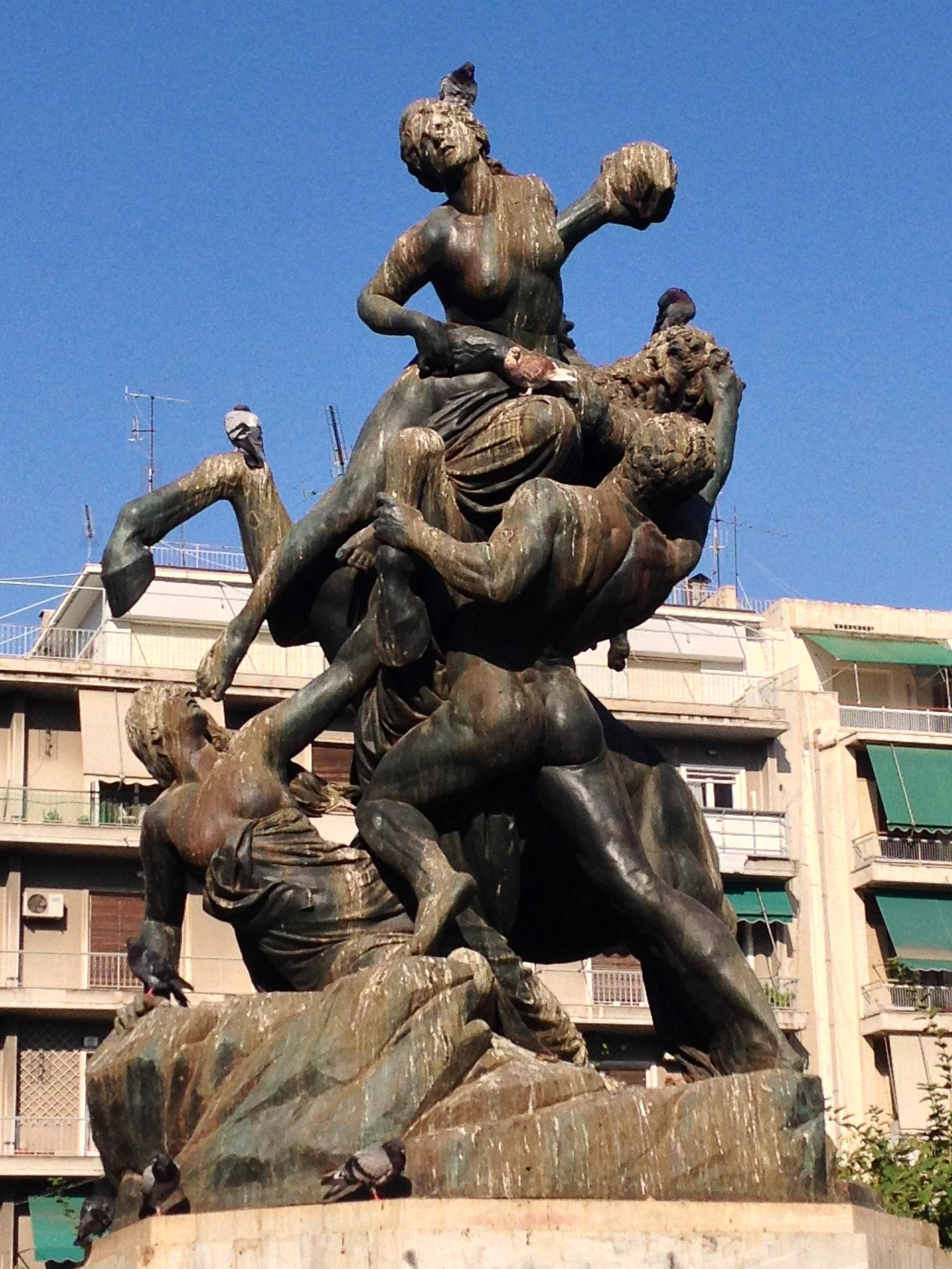 Φεύγοντας από τα Εξάρχεια κατευθυνόμαστε προς την πλατεία Βικτωρίας. «Ο Θησέας σώζων την Ιπποδάμειαν» μοιάζει να περνάει απαρατήρητος από τους νέους οικιστές της περιοχής. Οι περιπαικτικοί στίχοι όμως «Και φέτος κένταυροι» μας αναγκάζουν να δούμε την πλατεία και το άγαλμά της με άλλο μάτι.