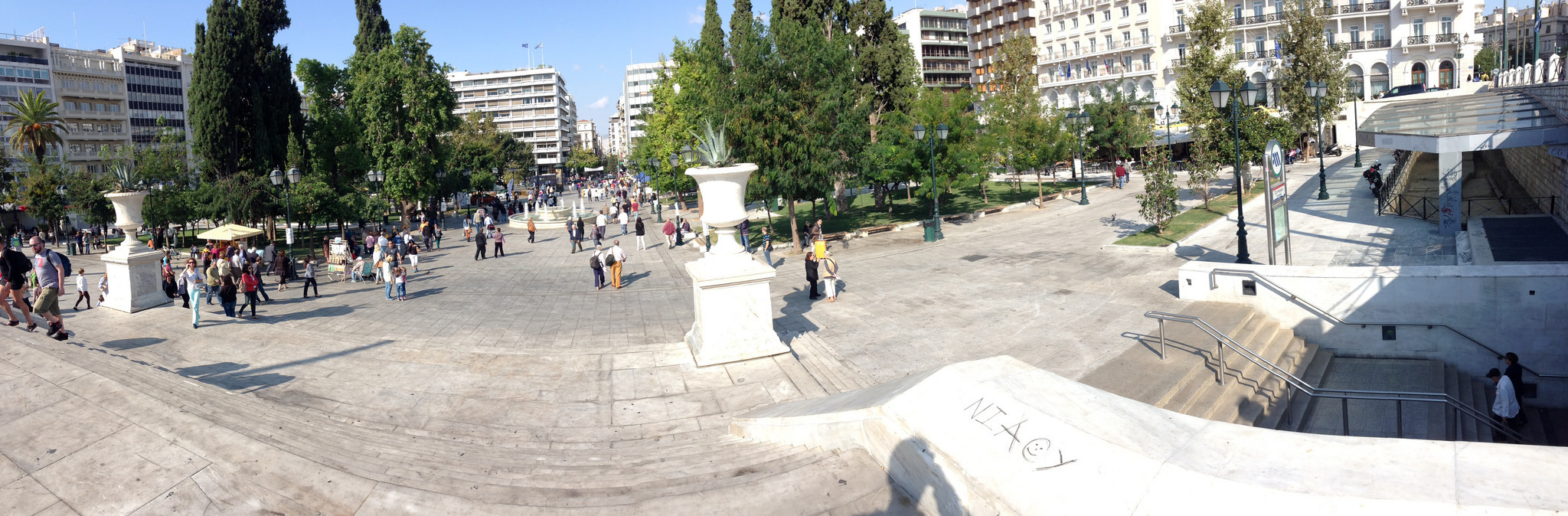 Φτάνουμε στο Σύνταγμα και πριν αναδυθούμε στην επιφάνεια έχουμε την ευτυχή συγκυρία να ακούσουμε την απαγγελία ποιημάτων με αφορμή την «Παγκόσμια ημέρα ποίησης στο Αττικό Μετρό». Οι συρμοί έχουν πλημμυρίσει από στίχους. Στην έξοδό μας η στρατιωτική παρέλαση έχει ήδη αρχίσει. Ξεναγός μας αυτή τη φορά οι στοχασμοί από την Χειροποίητη πόλη που θα μας προβληματίσουν για την επέλαση των μηχανοκίνητων ίππων στην πόλη. Άλλωστε, παραδόξως, η διεξαγωγή της στρατιωτικής παρέλασης δεν απέχει παρά ελάχιστες μέρες από την παγκόσμια ημέρα ποίησης.