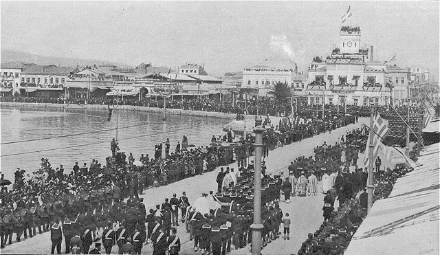 Καθώς περνούσανε τους πληγωμένους απ’ έξω από ένα καφενείο της αποβάθρας, ένα ψηλός γέρος χτύπησε τις παλάμες του φωνάζοντας: