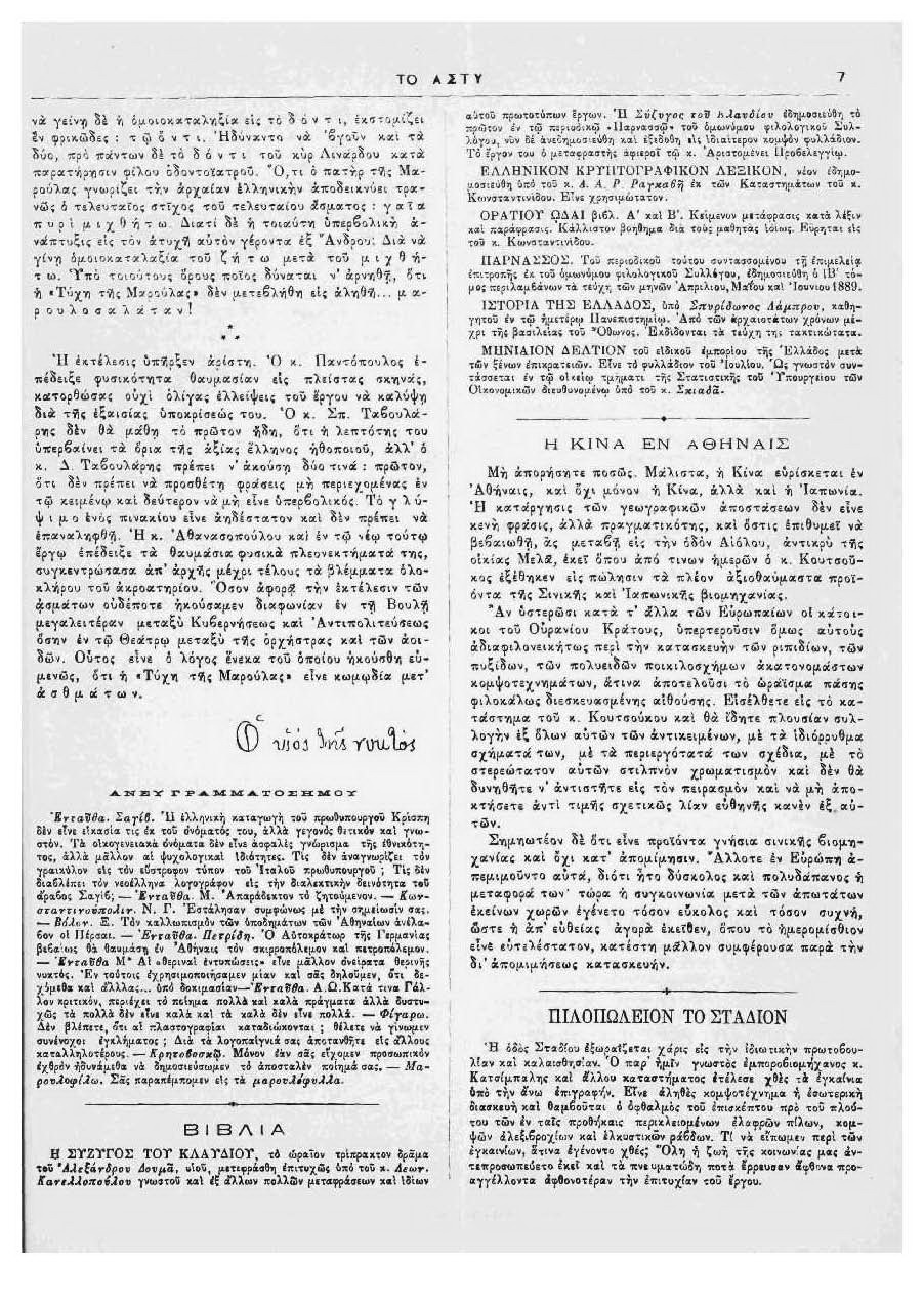 — Αυτό το γράφει έξω απ’ την πόρτα, λέει η Κοντύλω. Εδώ γράφει: «Ο Λαός υπ… υπέρ της βιο… βιομηχανίας, και η βιομηχανία υ… υπέρ του Λαού. Το πιλο… πιλο… πιλοποιείον των Αθηνών Η. Πουλόπουλος.»