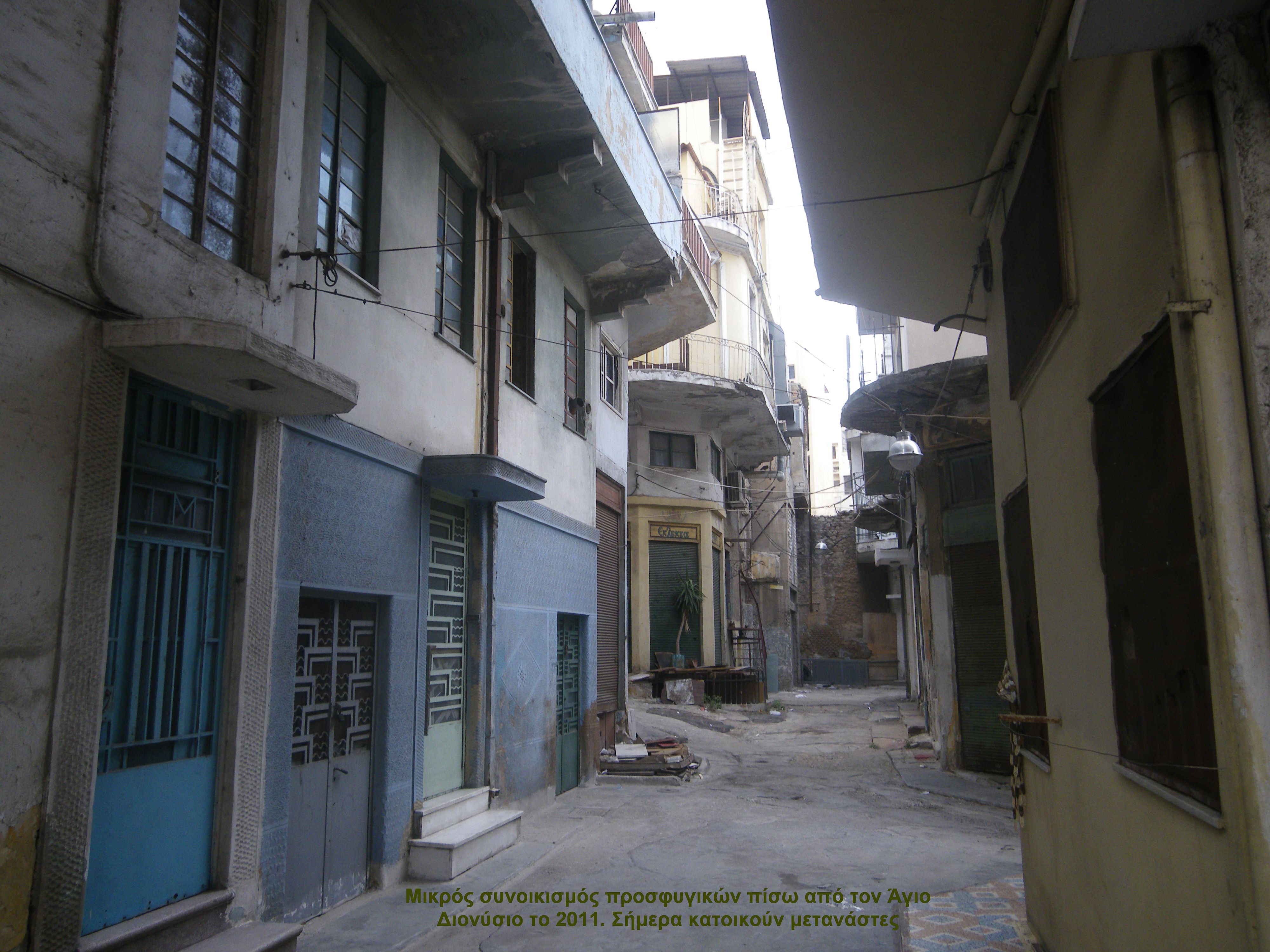 Ήταν ένας δρόμος κάθετος στην Αιτωλικού, χωρίς σπίτια, μόνο με κάτι άγριους σοβατισμένους μαντρότοιχους, δεξιά και αριστερά, και πίσω τους όλο υπαίθριες αποθήκες. Πάνω στους τοίχους ακουμπούσαν πλαγιαστά κάτι τεράστιες λαμαρίνες και μέσα οι αποθήκες ήταν γεμάτες από παλιοσίδερα, με κάτι πελώριες άχρηστες μηχανές καραβιών, με προπέλες, άγκυρες, καζάνια, τροχαλίες. Οι πόρτες ξεχαρβαλωμένες κι αυτές, μισάνοιχτες.