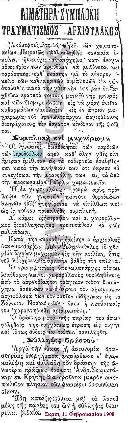 Στο μεταξύ ο Βουτσινάς, ο διευθυντής μου, τηλεφώνησε στο αστυνομικό τμήμα των Βούρλων. Ζητούσε να μάθει μήπως οι γυναίκες κακοποίησαν τη συντάκτιδα των «Προπυλαίων». Είχε και την έννοια μου λοιπόν. Καλό κι αυτό, σκέφτηκα. Κάμποσες μέρες ανεβοκατέβαινα στον Πειραιά. Το βράδυ ένας αστυνομικός είχε την καλοσύνη να με συνοδεύει στον σταθμό.