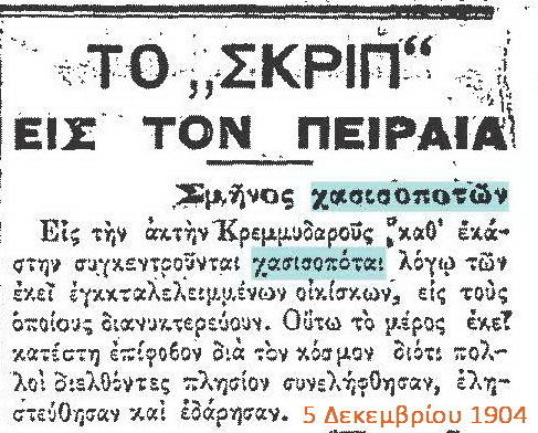 Στον Πειραιά έφτασα ένα πρωινό πριν από τις 8, ντυμένη με παλιά ρούχα. Σκέφθηκα πως καλύτερα να έλεγα στα κορίτσια πως ήμουν ράφτρα, παρά πως πήγαινα για δημοσιογραφική έρευνα. Παρουσιάστηκα στο γραφείο της χωροφυλακής, δίπλα από το φρούριο. Ένας αστυνομικός μου έδωσε μια σφυρίχτρα μεγάλη στο χέρι.