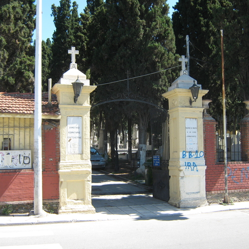 Πρόκειται για το πρώτο οργανωμένο χριστιανικό νεκροταφείο της πόλης (19ος αιώνας). Σήμερα αποτελεί Μνημείο της Νεότερης Ιστορίας καθώς εκεί βρίσκονται οι τάφοι προσώπων που διαδραμάτισαν σημαντικό ρόλο στην ιστορία της πόλης. Στην ίδια περιοχή βρίσκονται ακόμη το νεκροταφείο των Αρμενίων και αυτό τ…