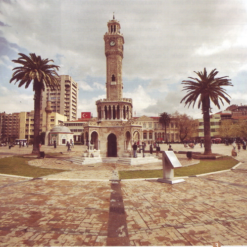 Το νότιο μέρος της πόλης αποτελεί την καρδιά της μουσουλμανικής Σμύρνης. Η Πλατεία του Ρολογιού (Konak Meydani στα τούρκικα) είναι εμβληματική για τους Τούρκους ακόμα. Σ’ αυτή δεσπόζει ο Πύργος του Ρολογιού (στα τουρκικά Saat Kulesi), κτίσμα του 1901, ύψους 25 μέτρων. Δώρο του Κάιζερ Γουλιέλμου Β΄ στο Σουλτάνο Αβδούλ Χαμίτ Β΄, είναι το χαρακτηριστικότερο από τα 58 ρολόγια που κτίστηκαν την ίδια περίοδο, με σκοπό να υιοθετηθεί ο δυτικός τρόπος μέτρησης του χρόνου. Όπισθεν της πλατείας, βρισκόταν το Κονάκι (στα τουρκικά Konak θα πει ευρύχωρη κατοικία), το τούρκικο δηλαδή Διοικητήριο της πόλης, το οποίο χρησίμευε και ως κατοικία του Οθωμανού κυβερνήτη. Στην ευρύτερη περιοχή απλώνονται οι στρατώνες και το τουρκικό νεκροταφείο. Στην πλατεία του Διοικητηρίου έχουν εγγραφεί συμβολικά αντικρουόμενες μνήμες. Για τους Έλληνες της Σμύρνης συνιστά τόπο μαρτυρίου, καθώς σ’ αυτήν παραδόθηκε από τον Νουρεντίν Πασά στον όχλο, για να τον λιντσάρουν, ο Μητροπολίτης Χρυσόστομος. Για τον μουσουλμανικό όμως πληθυσμό της πόλης, αποτελεί σύμβολο, καθώς σ’ αυτήν εδραιώνεται η «απελευθέρωση» της Σμύρνης από τους απίστους (γκιαούρηδες), η ανύψωση της τουρκικής σημαίας και η αρχή μιας νέας πόλης που τους ανήκει. Να μελετήσετε αυτή την αντίφαση και τα συναισθήματα που γεννά, στα κείμενα της ενότητας. Εντοπίζετε σημεία σύγκλισης ή ριζικής απόκλισης στις αφηγηματικές φωνές που μαρτυρούν τα ιστορικά γεγονότα;