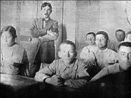 Στην τάξη του ελληνικού σχολείου στην Κερατέα το 1915 [πηγή: περιοδ. Η Λέξη 187 (2006), 17]