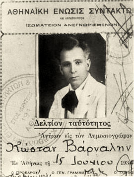 Η δημοσιογραφική ταυτότητα του ποιητή (1934) [πηγή: περιοδ. Η Λέξη 187 (2006), 29]