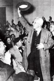 Στην εκδήλωση για τα πενηντάχρονα του έργου του (Θέατρο Ιντεάλ, Δεκέμβρης 1956) [πηγή: αφιερωματικό τεύχος περιοδ. Η Λέξη 187 (2006), 71.