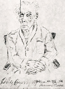 Πορτρέτο του Κ. Βάρναλη φιλοτεχνημένο από τον Γιάννη Ρίτσο, για την έκδοση της «Αληθινής απολογίας του Σωκράτη» το 1974 από τις εκδόσεις Κέδρος [πηγή: Ψηφιακό Αρχείο Γιάννης Ρίτσος, 100 χρόνια από τη γέννησή του, ΕΚΕΒΙ]