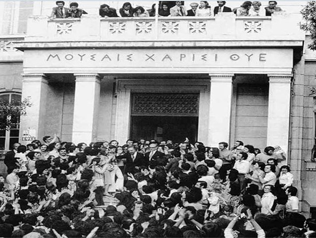 | 1974 | Ο αφανισμός της Μήλος, Καπνισμένο τσουκάλι, Ύμνος και θρήνος για την Κύπρο, Μελετήματα, Πέτρινος χρόνος, Ο τοίχος μέσα στον καθρέφτη, Χάρτινα (έκδ.). Κυκλοφορεί ο δίσκος Δεκαοχτώ λιανοτράγουδα της πικρής πατρίδας του Μ. Θεοδωράκη. | Κυπριακό πραξικόπημα. Τουρκική εισβολή στην Κύπρο. Πτώση της Χούντας. Μεταπολίτευση. ~ Ν. Βρεττάκος, Ωδή στον ήλιο. Π. Καλιότσος, Τα ξύλινα σπαθιά. Δ. Νόλλας, Νεράιδα της Αθήνας. Α΄ Κρατικό Βραβείο Ποίησης: Ζ. Καρέλλη, Τα ποιήματα. Θάνατος του Βάρναλη. | Πτώση της δικτατορίας στην Πορτογαλία (Η Επανάσταση των Γαριφάλων). Σκάνδαλο Watergate στις Η.Π.Α. ~ Βραβείο Νόμπελ Λογοτ.: Eyvind Johnson, Harry Martinson. |