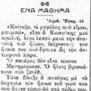 | 1932 | Ο πατέρας του εισάγεται στο Δαφνί. | Βουλευτικές εκλογές με απλή αναλογική - αδυναμία σχηματισμού κυβέρνησης. ~ Εγκαίνια Εθνικού Θεάτρου. περ. Μακεδονικές Ημέρες (1932-1939, 1952-1953). Γ. Σεφέρης, Η Στέρνα. | Ο Φ. Ρούζβελτ πρόεδρος των Η.Π.Α. ~ Βραβείο Νομπέλ Λογοτ.: John Galsworthy |