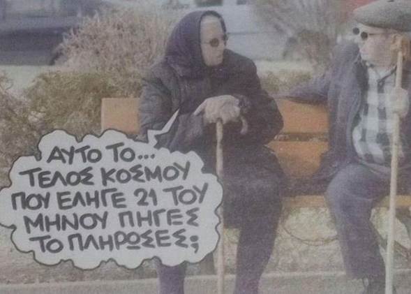 Αυτή την αμφισημία εκμεταλλεύεται ακριβώς ο γελοιογράφος σκόπιμα για να δημιουργήσει χιούμορ ανακαλώντας τη γνωστή πρόβλεψη των Μάγια για το τέλος του κόσμου στις 21/12/2012. Στην επικοινωνία η αμφισημία δεν είναι τόσο συχνή, αφού το