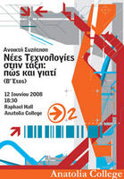 Η εκδήλωση διοργανώνεται από το Κολλέγιο Ανατόλια και θα πραγματοποιηθεί στις 12 Ιουνίου 2008 και ώρα 18.30, στην αίθουσα Raphael Hall.
