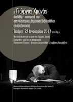 Την Τετάρτη 22 Ιανουαρίου, στην Κεντρική Δημοτική Βιβλιοθήκη Θεσσαλονίκης, και ώρα 8.00 μ.μ., ο Γιώργος Χρονάς διαβάζει ποιήματά του. Θα συνομιλήσουν μαζί του οι συγγραφείς Παναγιώτης Γούτας, Διονύσης Στεργιούλας και Ιορδάνης Κουμασίδης.
