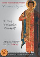 Κύκλος δράσεων Μουσείου Βυζαντινού Πολιτισμού Θεσσαλονίκης: Ένα έκθεμα διηγείται (Σεπτέμβριος, Οκτώβριος και Δεκέμβριος 2016)