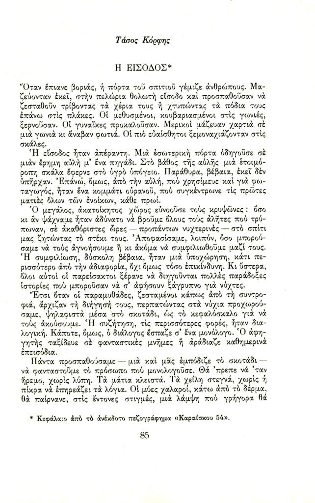 , «Η είσοδος [απόσπασμα από το μυθιστόρημα