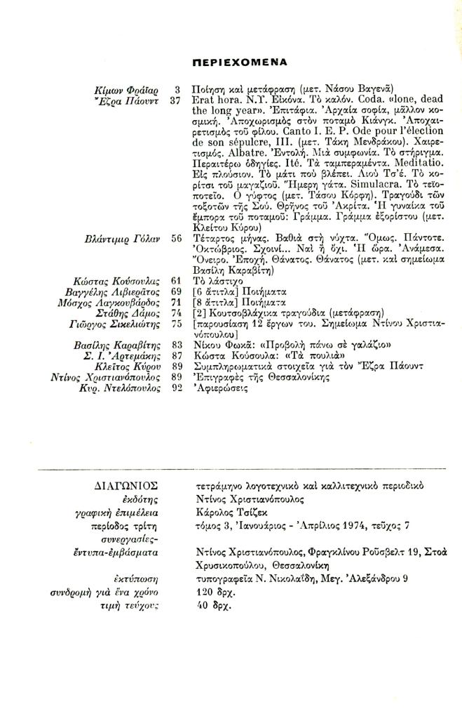 (Ιανουάριος-Απρίλιος 1974), σ. (εσώφυλλο)