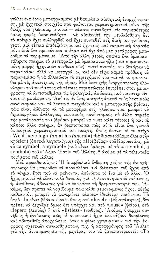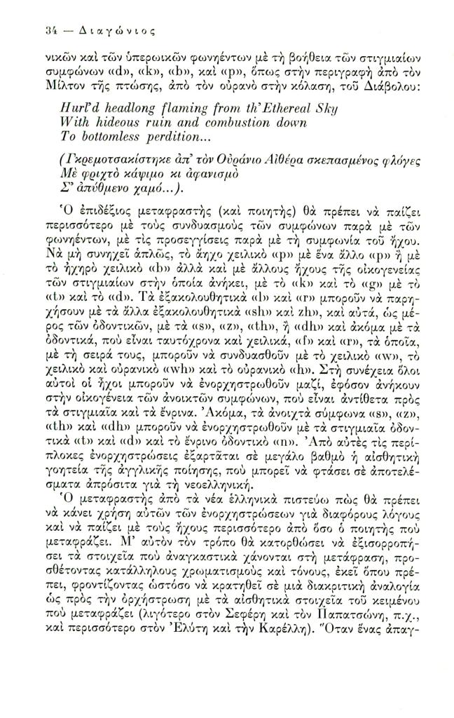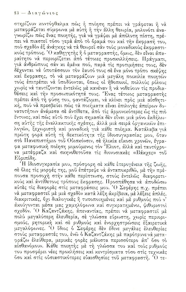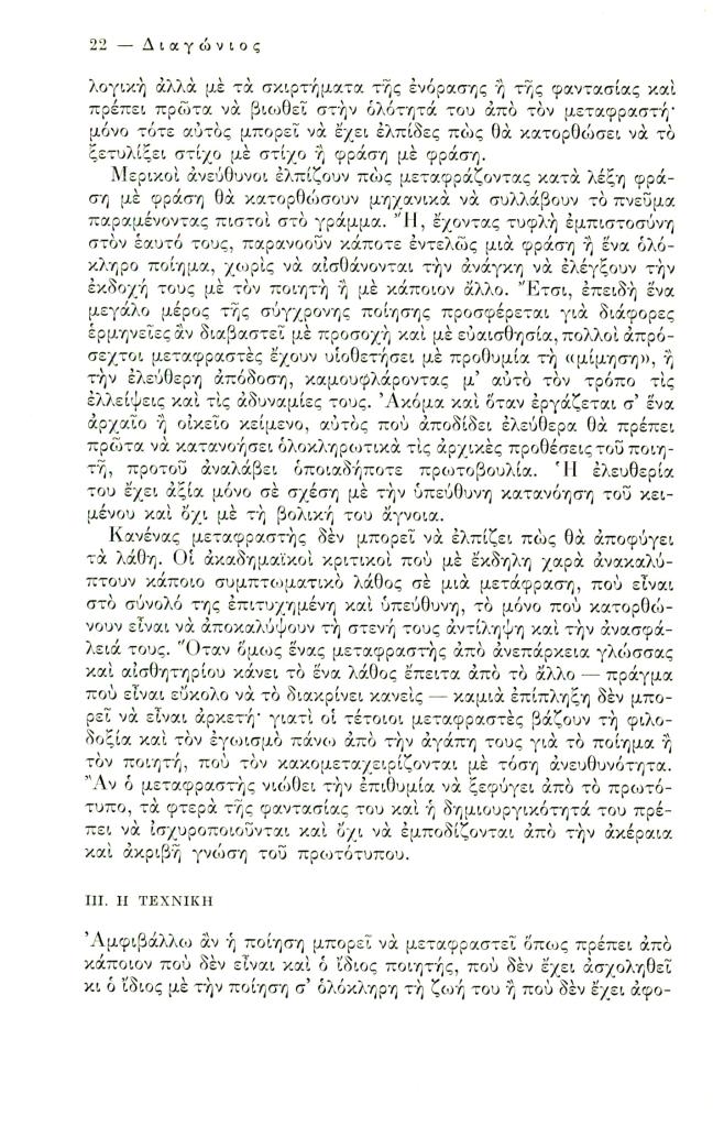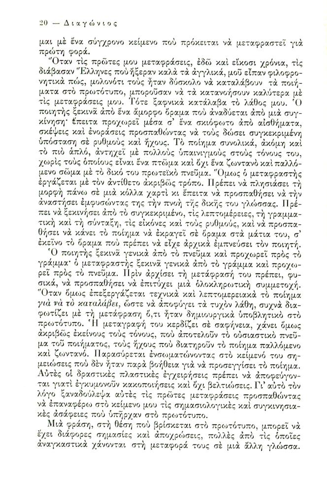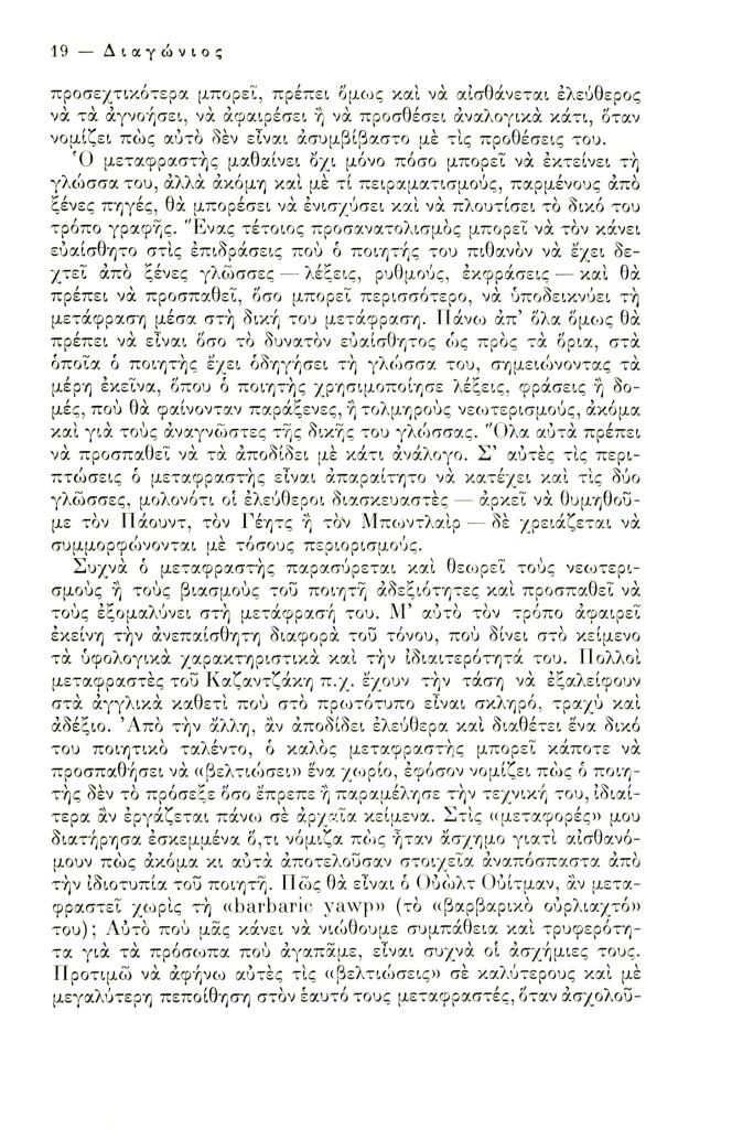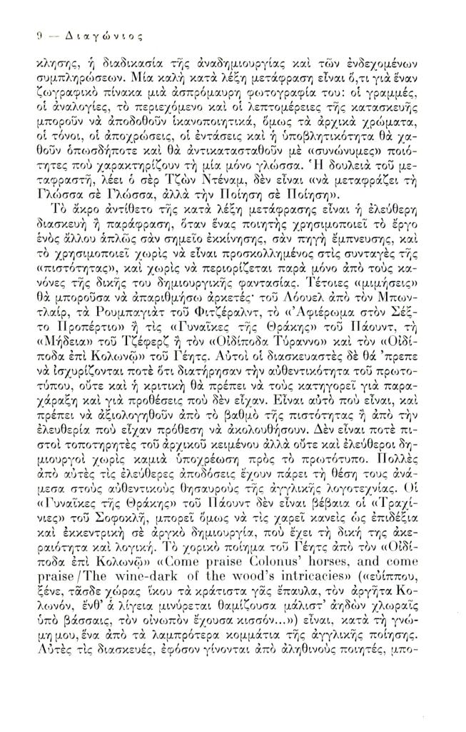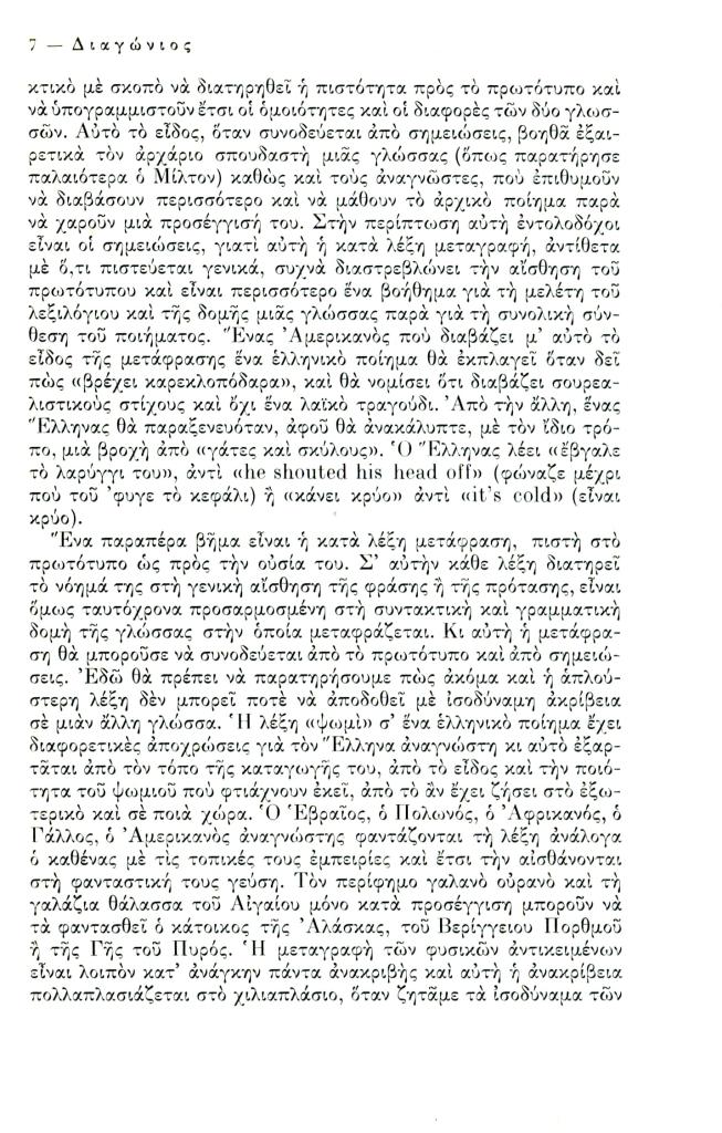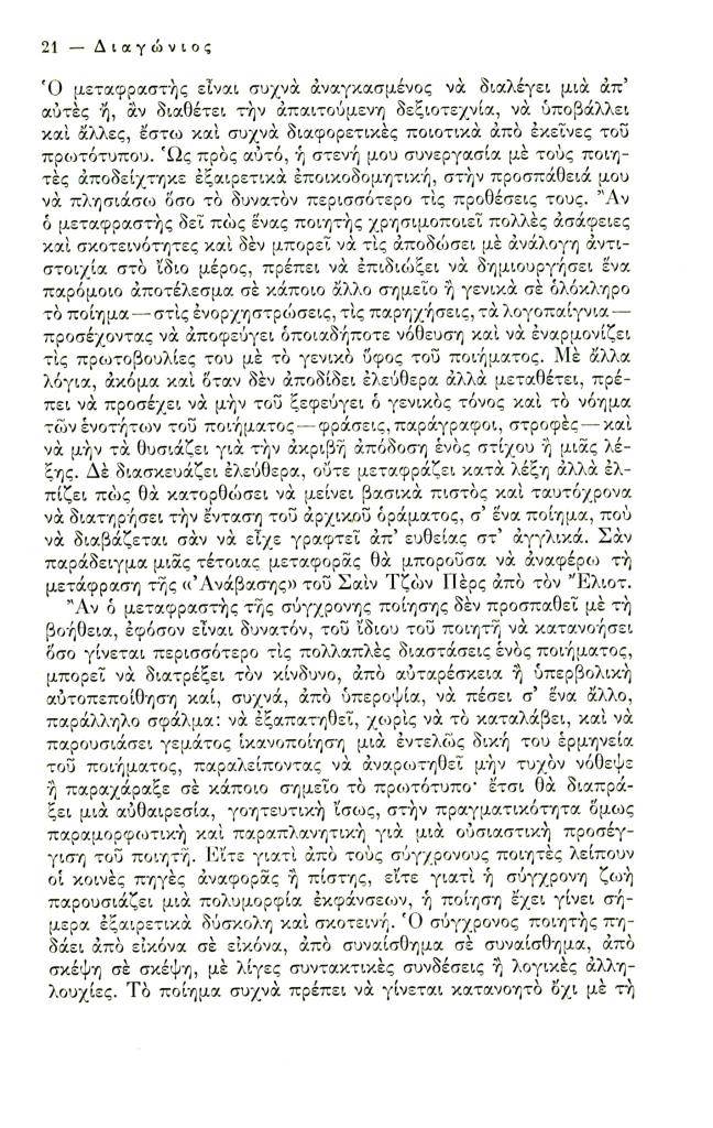 Friar Kimon, «Ποίηση και μετάφραση», Διαγώνιος, τχ. 7 (Ιανουάριος-Απρίλιος 1974), σ. 3-36