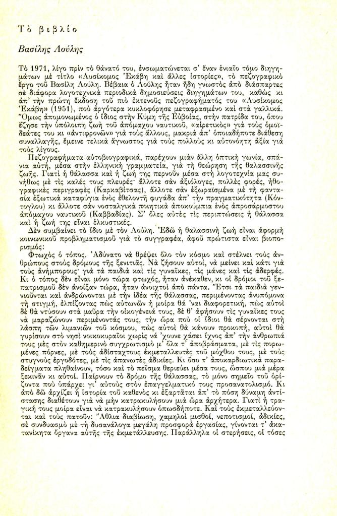 , «Το βιβλίο. Βασίλης Λούλης»,