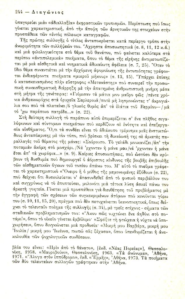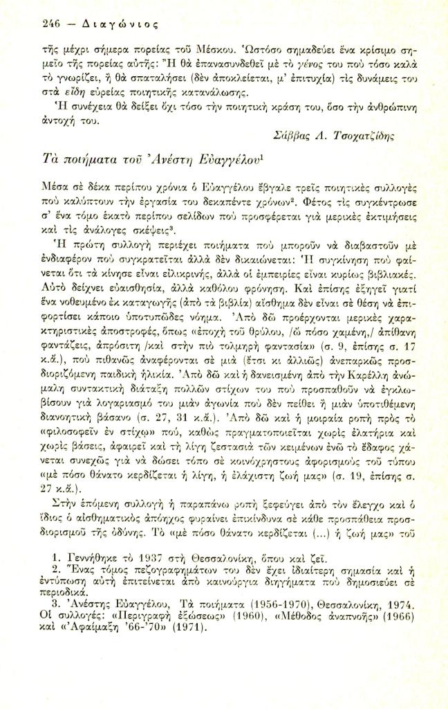 Τσοχατζίδης Σάββας Λ., «Το βιβλίο. Μάρκος Μέσκος», Διαγώνιος, τχ. 9 (Σεπτέμβριος-Δεκέμβριος 1974), σ. 243-246