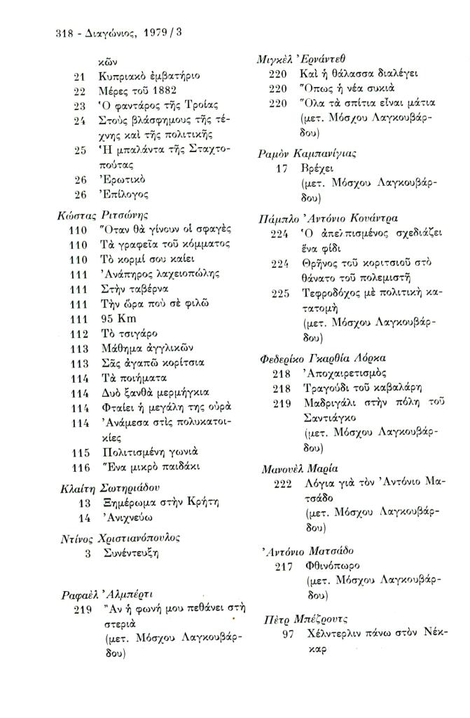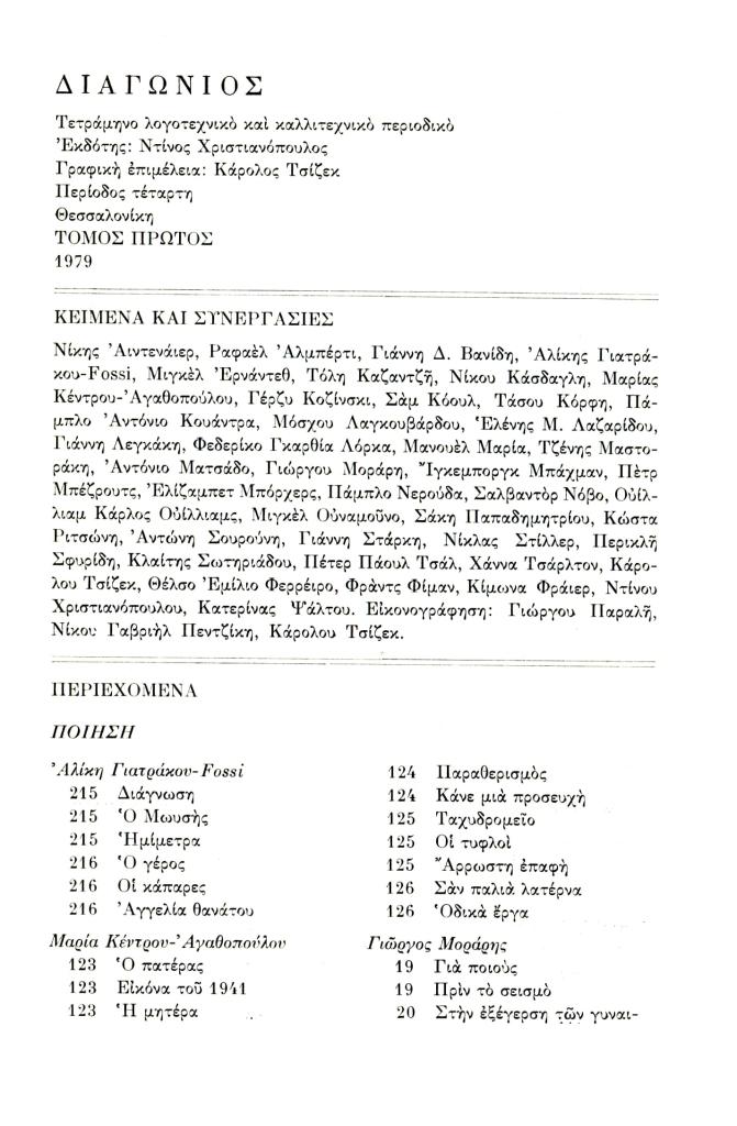 «Τόμος πρώτος 1979-Κείμενα και συνεργασίες-Περιεχόμενα»,