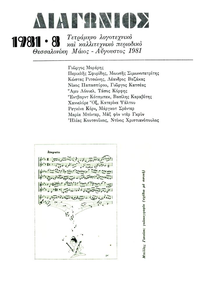 Γουσίου Μπίλλη, «Γελοιογραφία», Διαγώνιος, τχ. 8 (Μάιος-Αύγουστος 1981), σ. (εξώφυλλο)