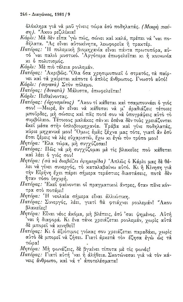 , «Ένα τανκ χρειάζεται ρουλεμάν, χωρίς αυτά δε μπορεί να κινηθεί», Διαγώνιος, τχ. 9 (Σεπτέμβριος-Δεκέμβριος 1981), σ. 245-247