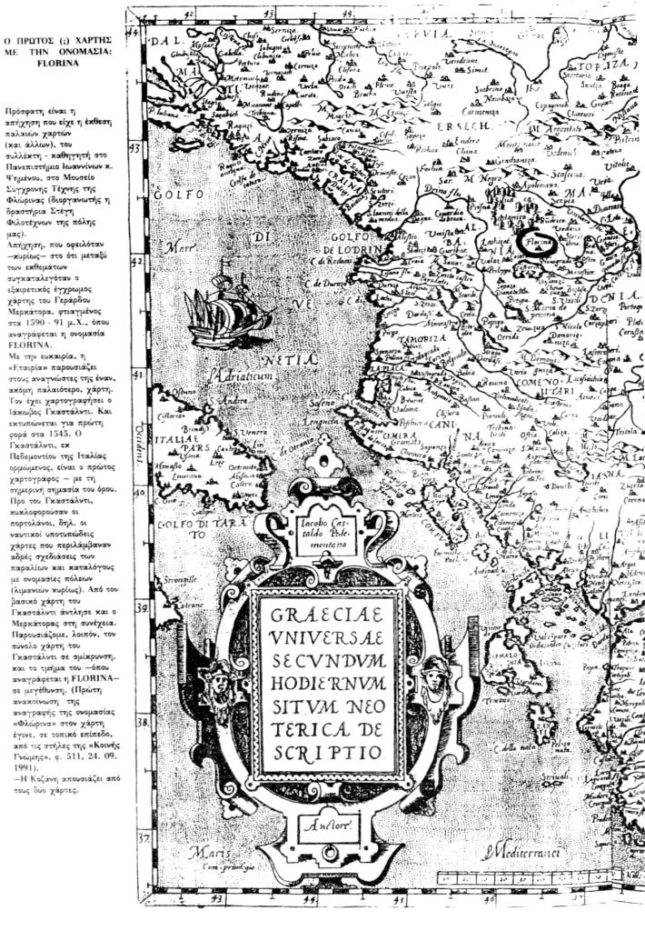«Ο πρώτος (;) χάρτης με την ονομασία: Florina», Εταιρία, τχ. 8-9 (Δεκέμβριος 1991), σ. 8-10