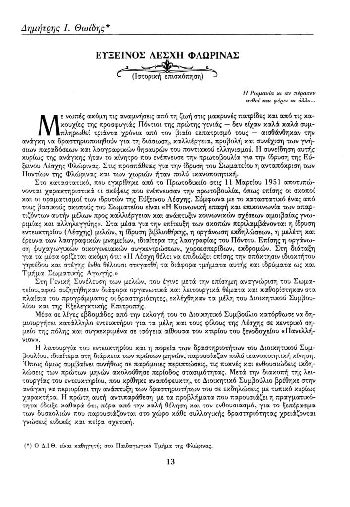 Θωίδης Δημήτρης Ι., «Εύξεινος Λέσχη Φλώρινας (Ιστορική επισκόπηση)», Εταιρία, τχ. 8-9 (Δεκέμβριος 1991), σ. 13-15