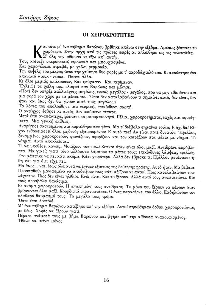 Ζήκος Σωτήρης, «Οι χειροκροτητές», Εταιρία, τχ. 8-9 (Δεκέμβριος 1991), σ. 16