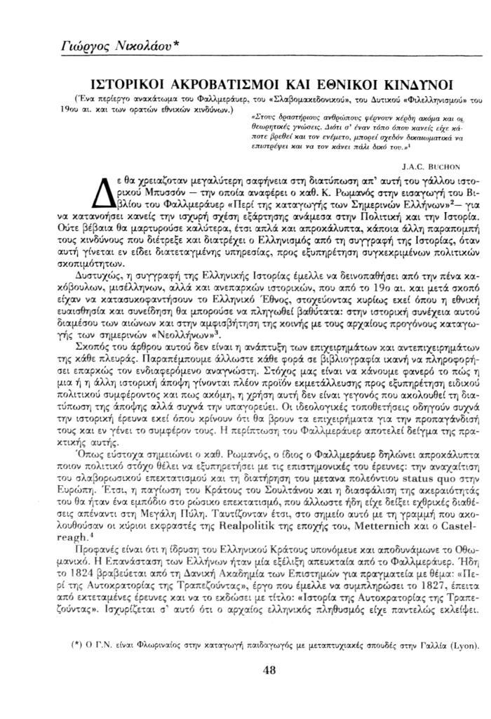 , «Ιστορικοί ακροβατισμοί και εθνικοί κίνδυνοι»,