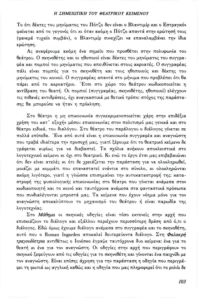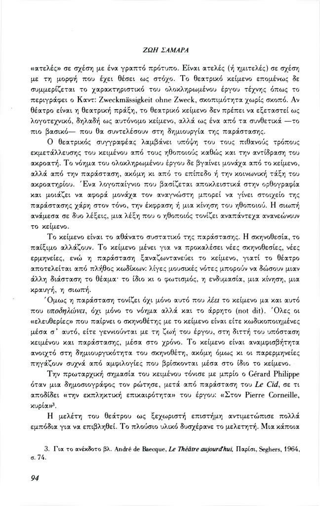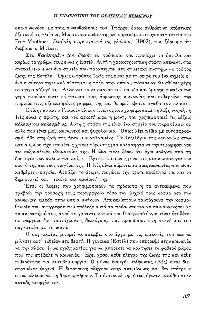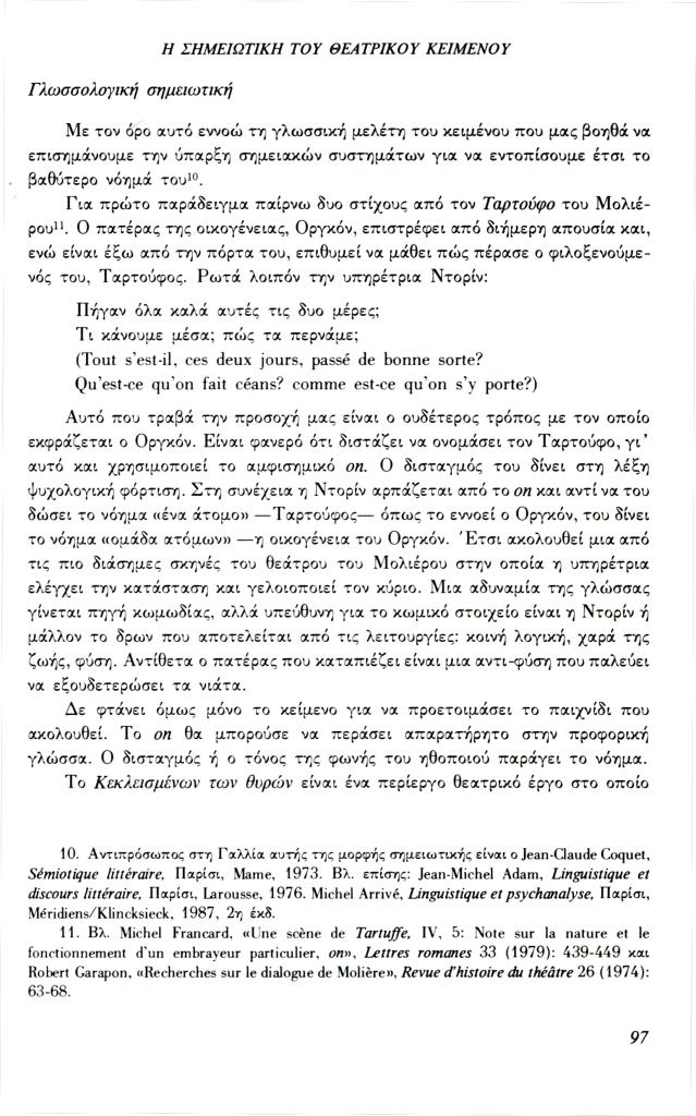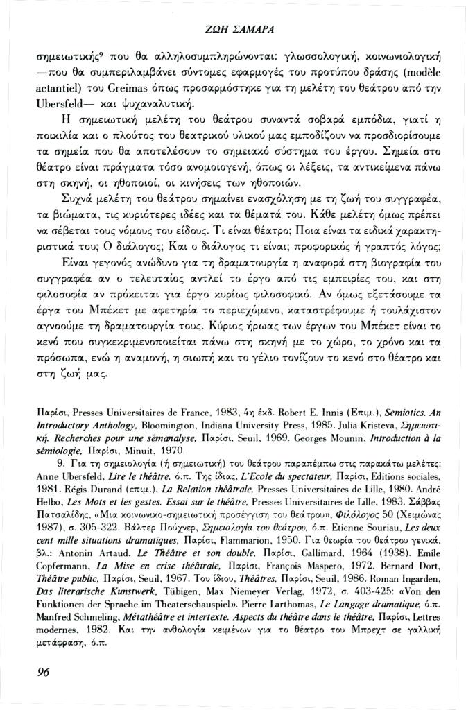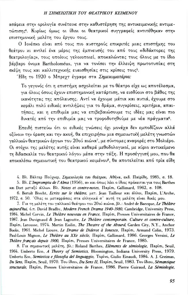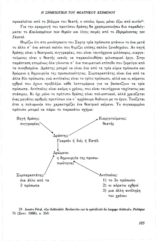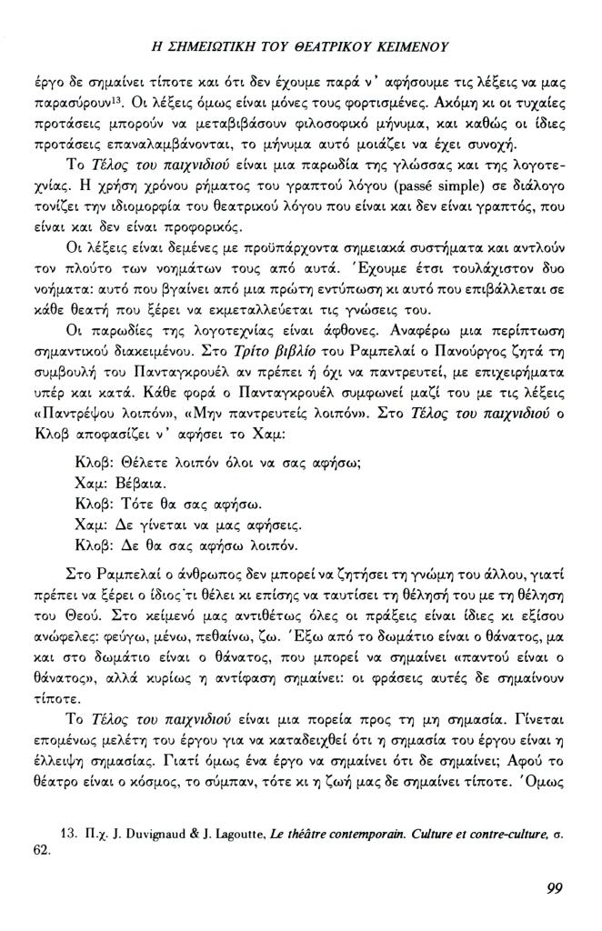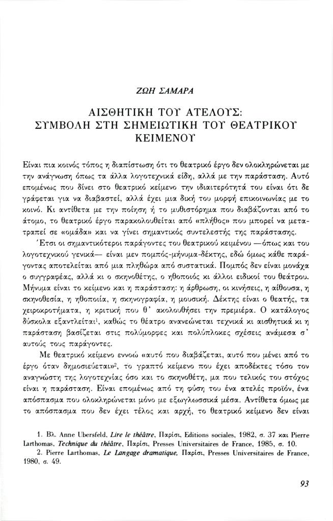 , «Αισθητική του ατελούς: Συμβολή στη σημειωτική του θεατρικού κειμένου», Φιλόλογος, τχ. 56 (Καλοκαίρι 1989), σ. 93-113