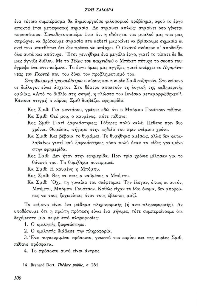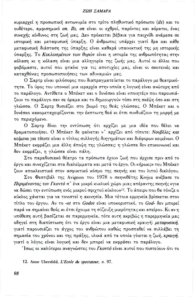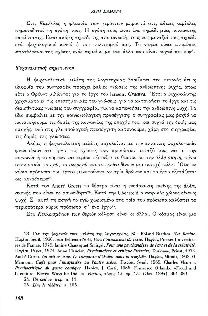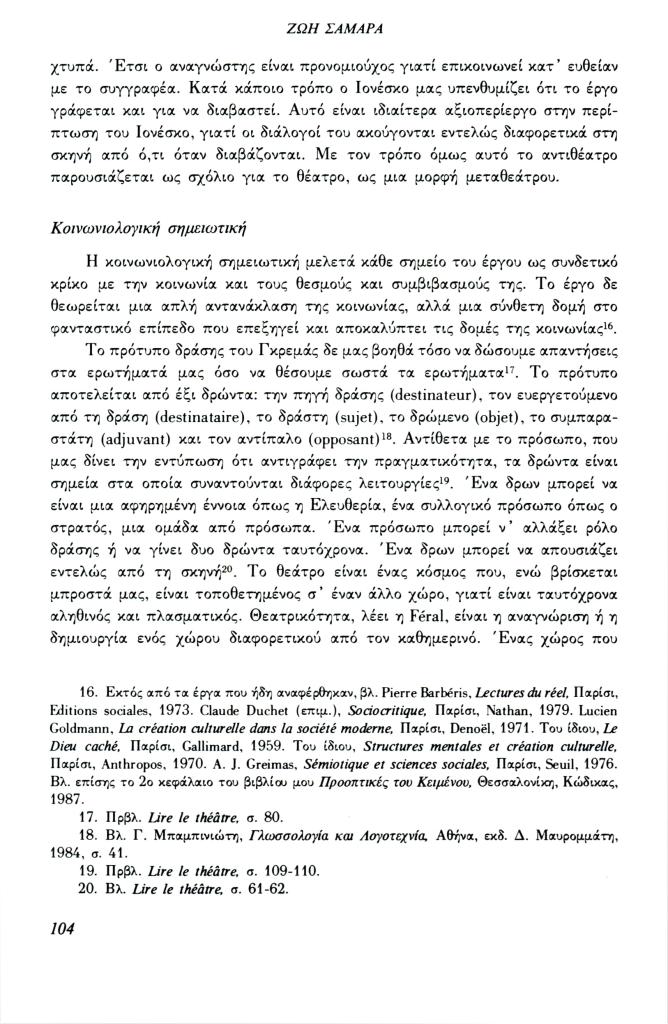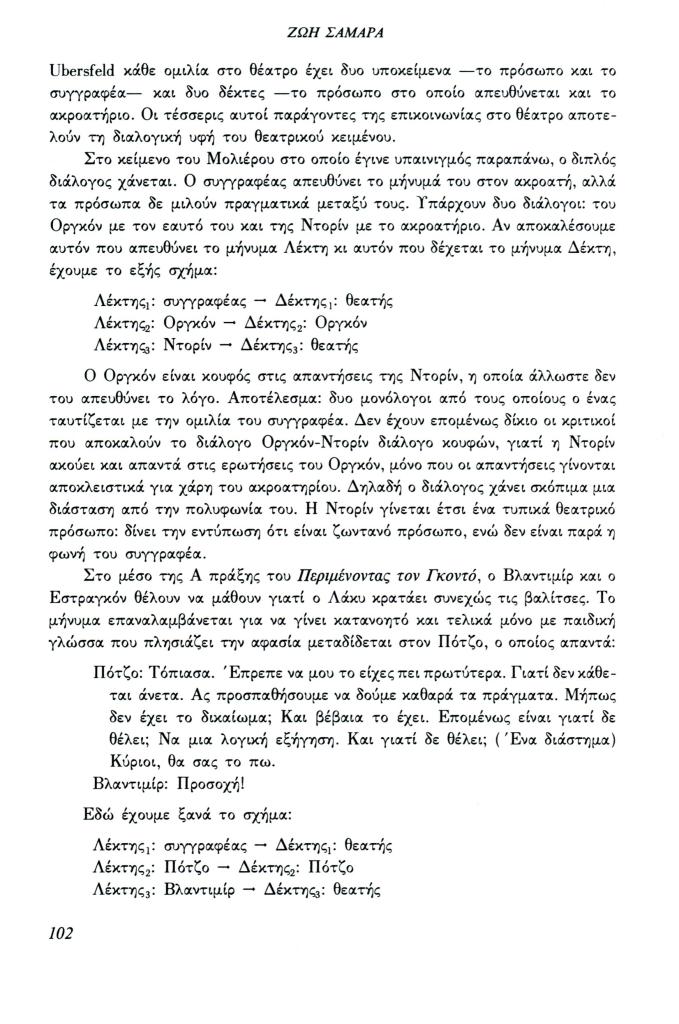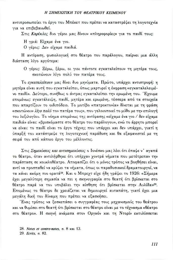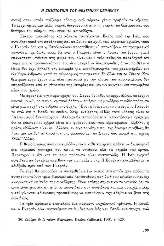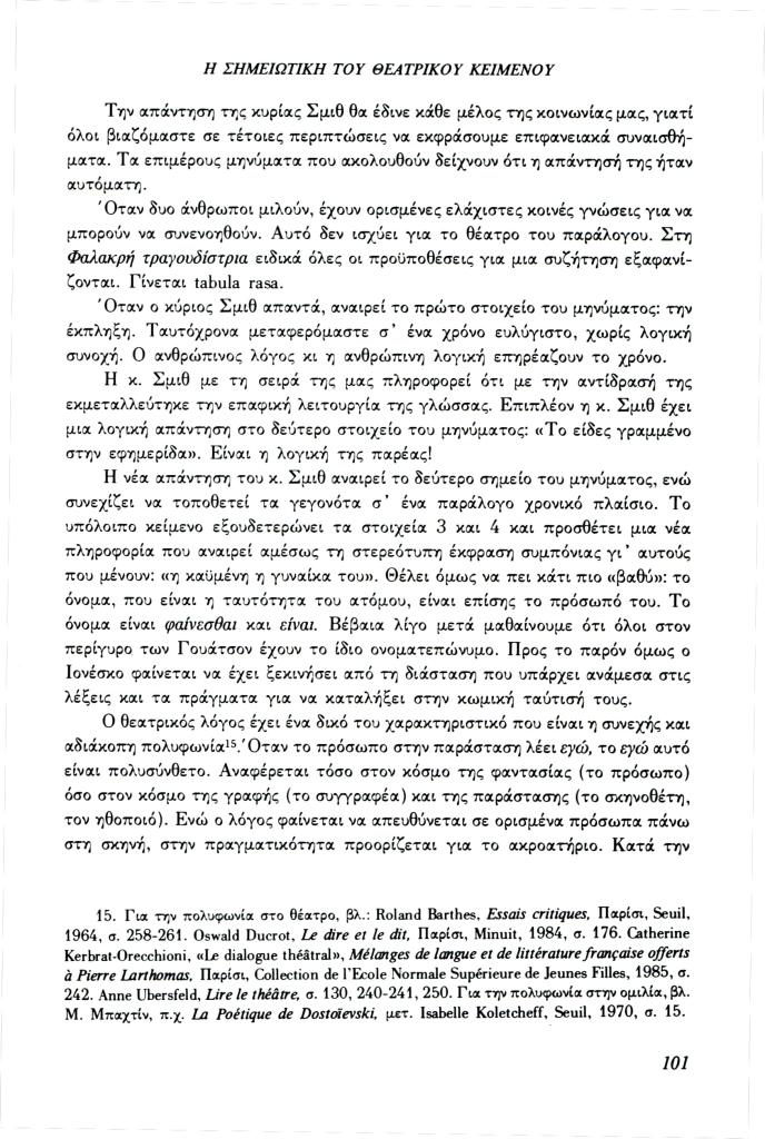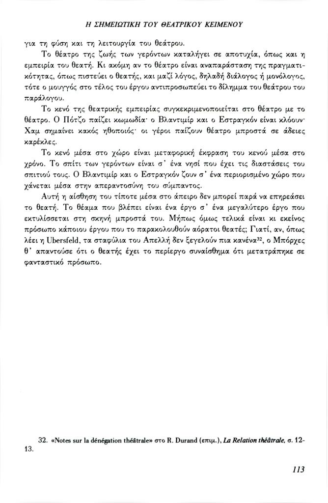 , «Αισθητική του ατελούς: Συμβολή στη σημειωτική του θεατρικού κειμένου», Φιλόλογος, τχ. 56 (Καλοκαίρι 1989), σ. 93-113