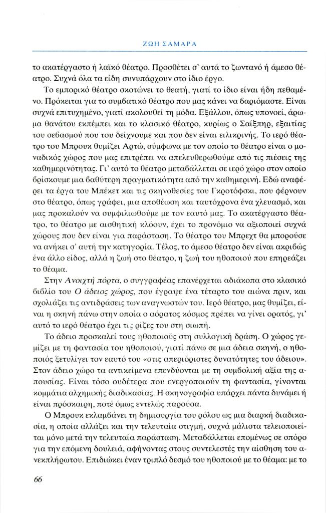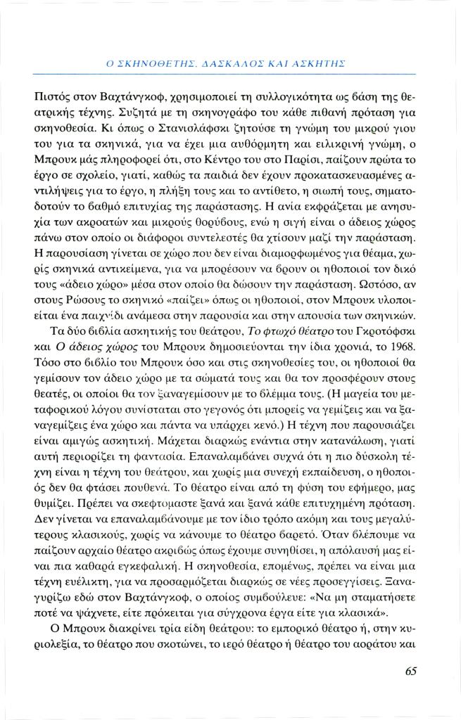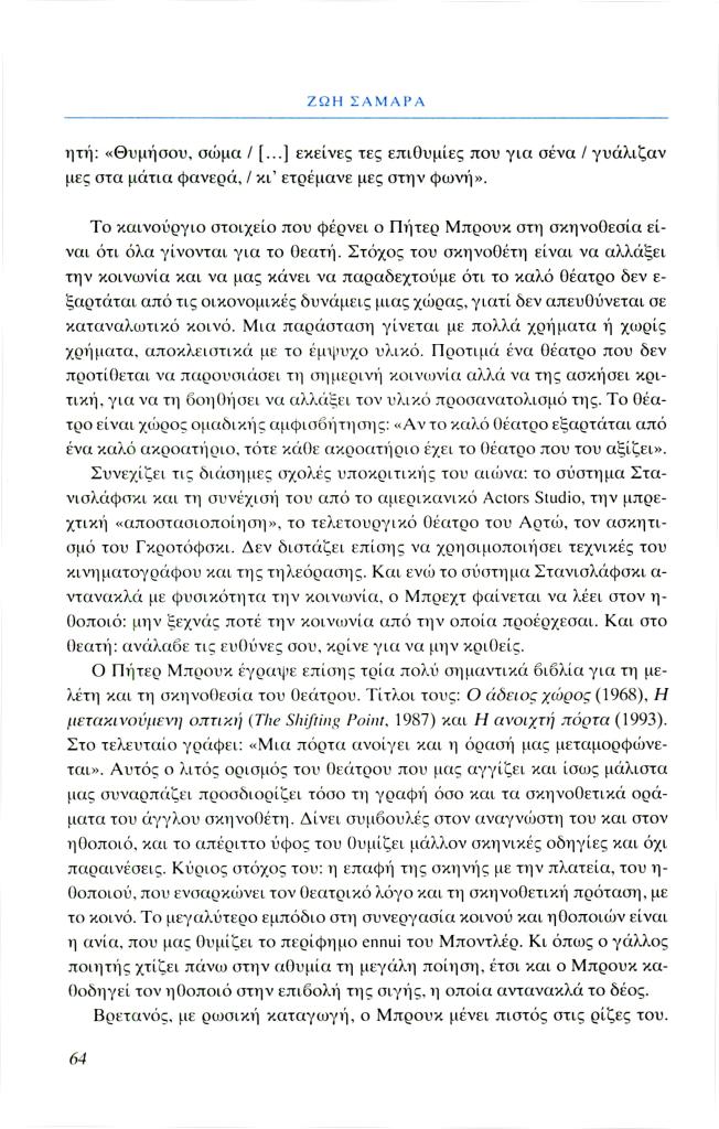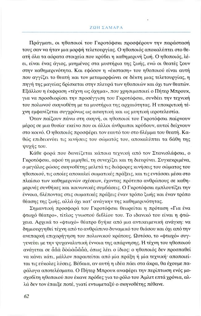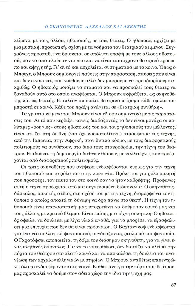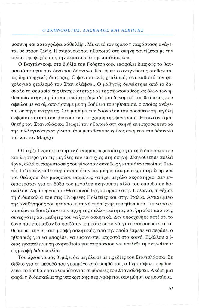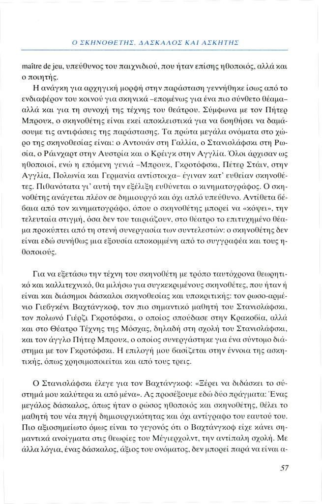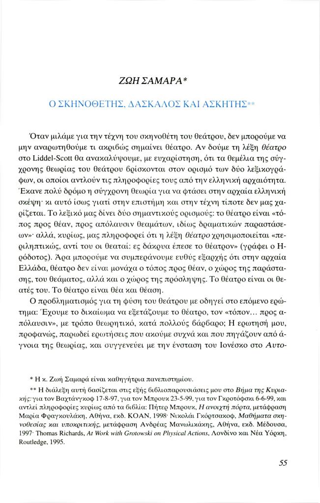 Σαμαρά Ζωή, «Ο σκηνοθέτης, δάσκαλος και ασκητής», Φιλόλογος, τχ. 99 (Άνοιξη 2000), σ. 55-67